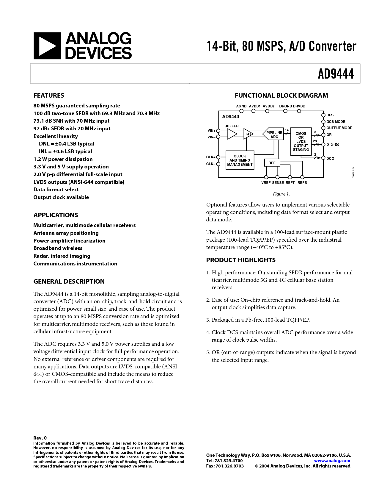 这 ad9444 是 一个 14-有点 单片, 取样 模数转换