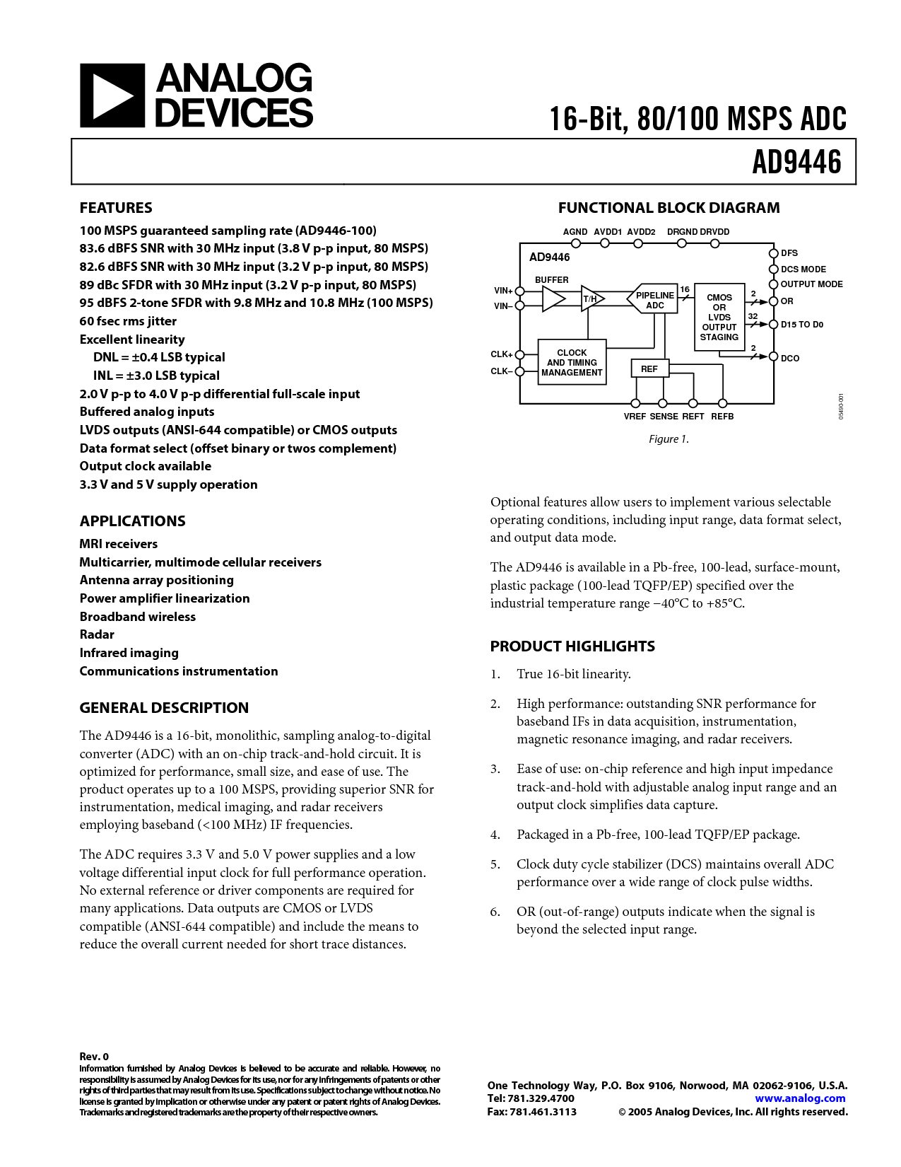 浏览型号AD9446-100LVDS的Datasheet PDF文件第2页