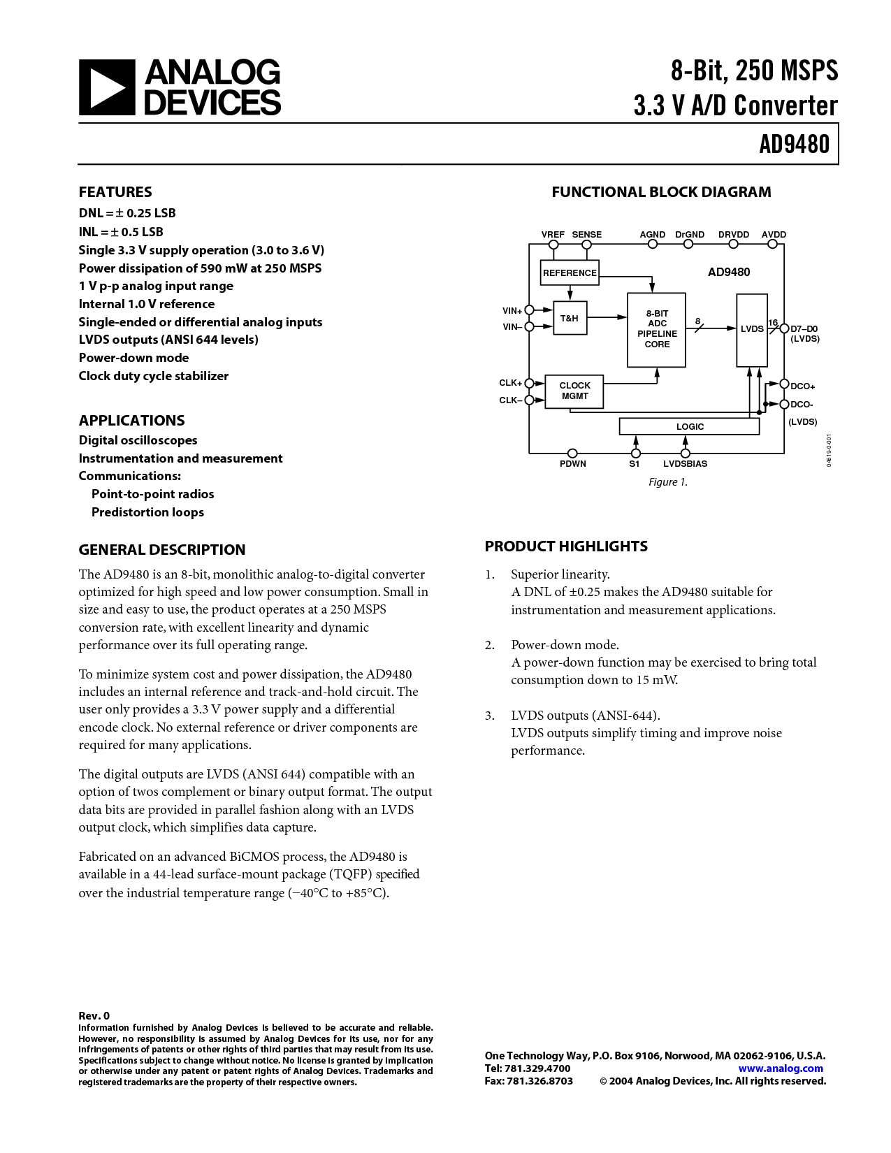 一个 dnl 的 ±0.25 使 这 ad9480 适合 用于