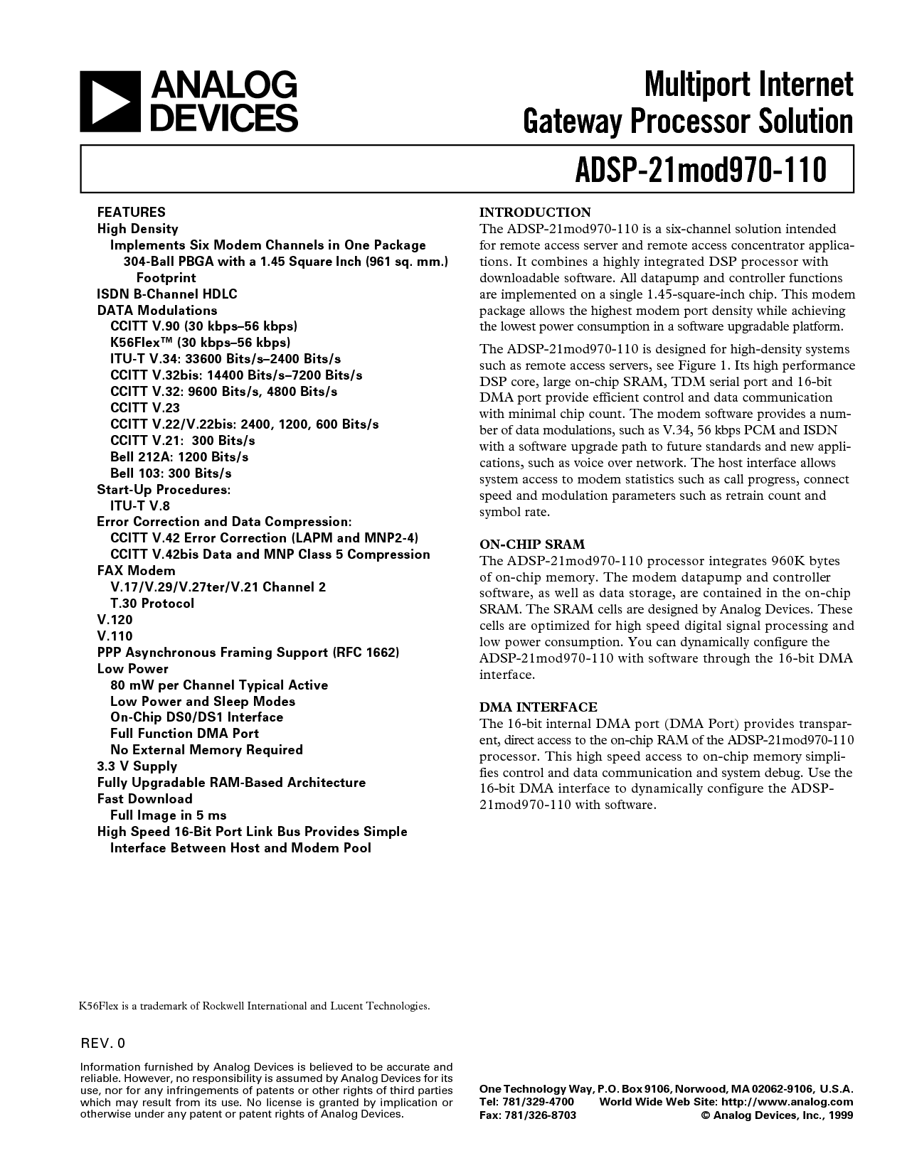 传真: 781/326-8703 © 模拟 设备, 股份有限公司., 1999