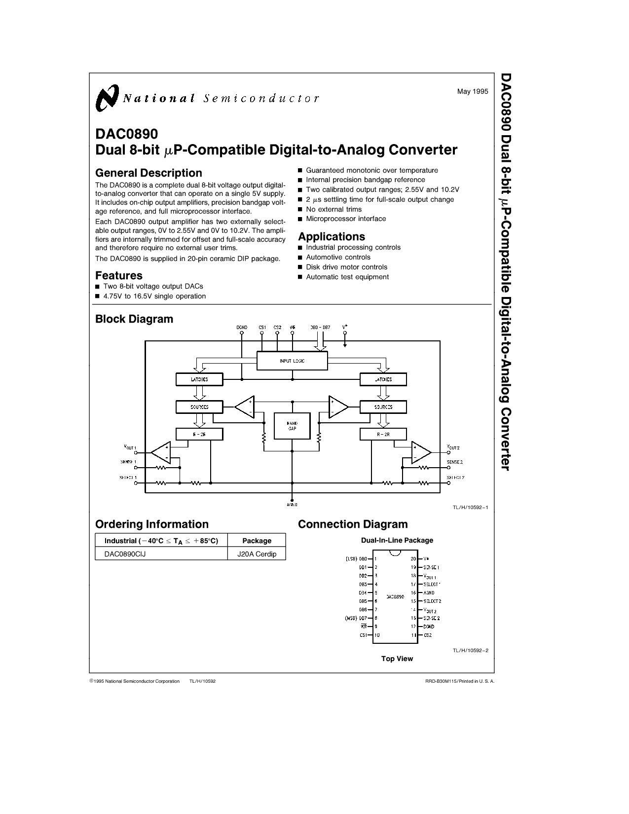 这 DAC0890 是 一个 完成 双 8-有点 电压 输出 数字-