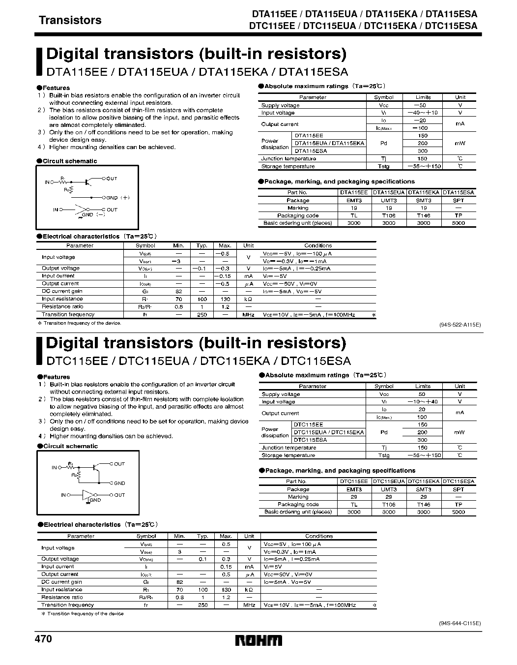 (94s-522-a115e) (94s-644-c115e) 470 晶体管 DTA115EE / DTA115EUA / DTA115EKA / DTA115ESA 晶体管 DTC115EE / DTC115EUA / DTC115EKA / DTC115ESA | |