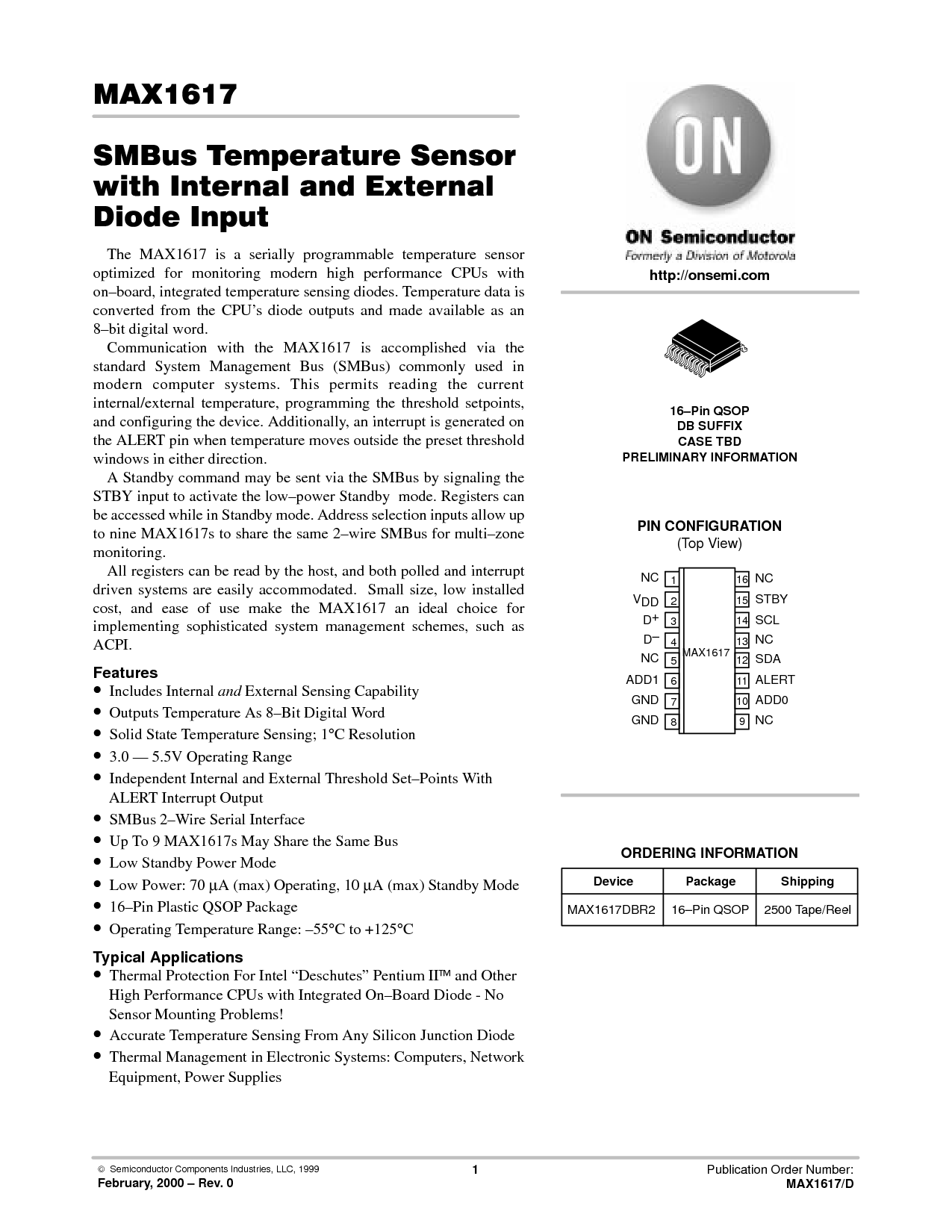 MAX1617DBR2 16–pin qsop 2500 胶带/卷轴