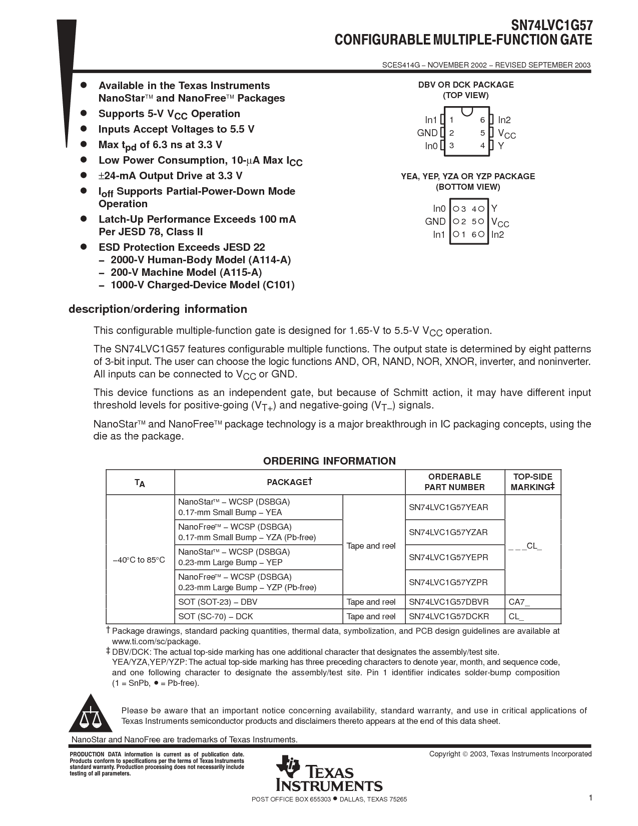 浏览型号SN74LVC1G57DBVR的Datasheet PDF文件第2页