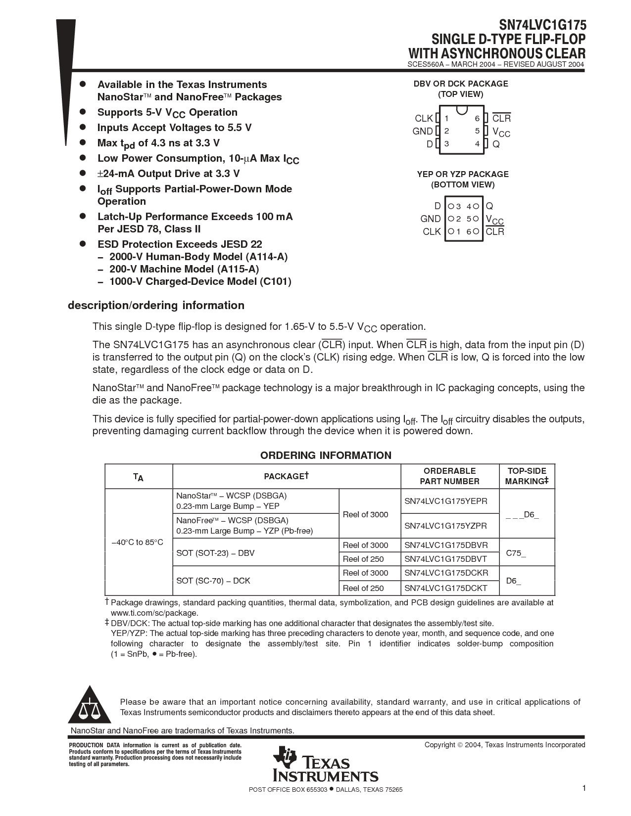 浏览型号SN74LVC1G175DBVR的Datasheet PDF文件第6页