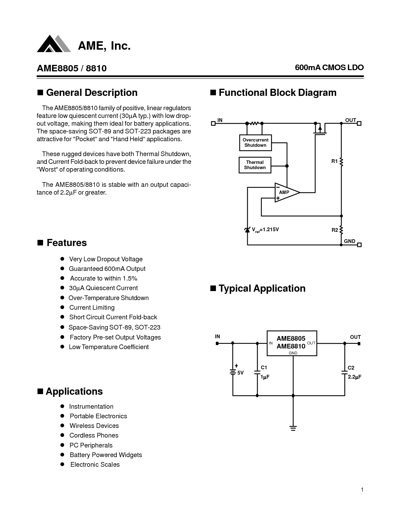 浏览型号AME8805DEGT的Datasheet PDF文件第2页