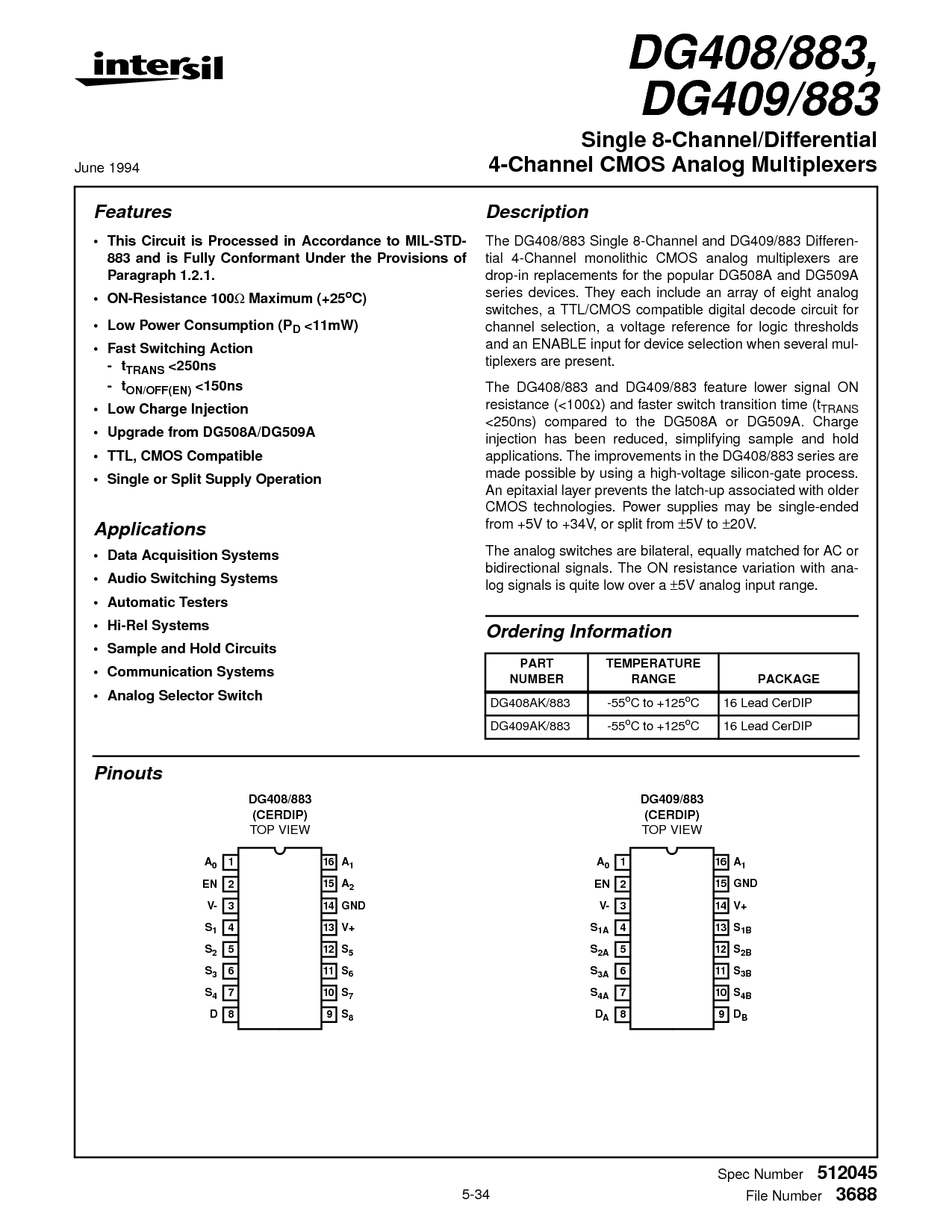 这 dg408/883 单独 8-频道 和 dg409/883 差异-