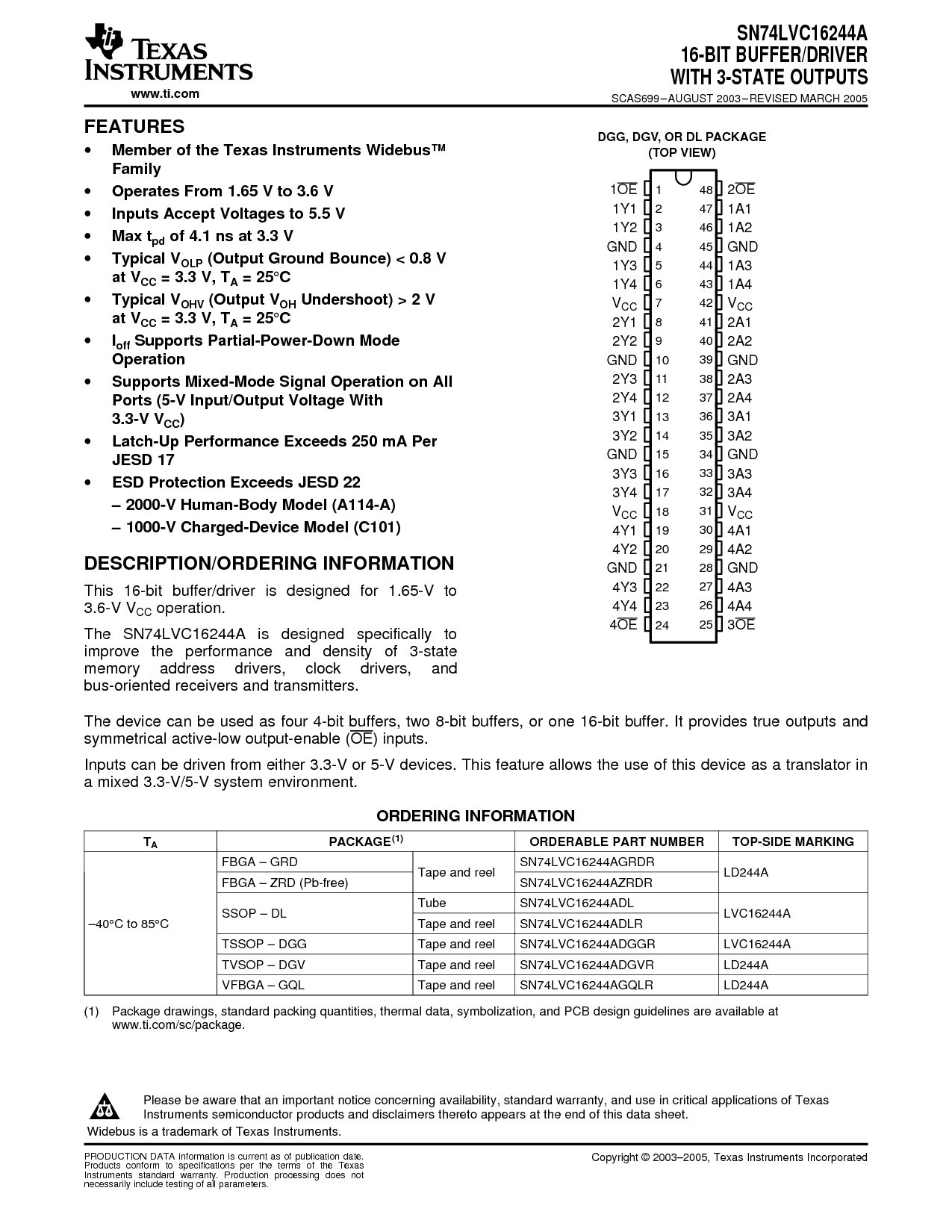 TSSOP–DGGTapeandreelSN74LVC16244ADGGRLVC16244A