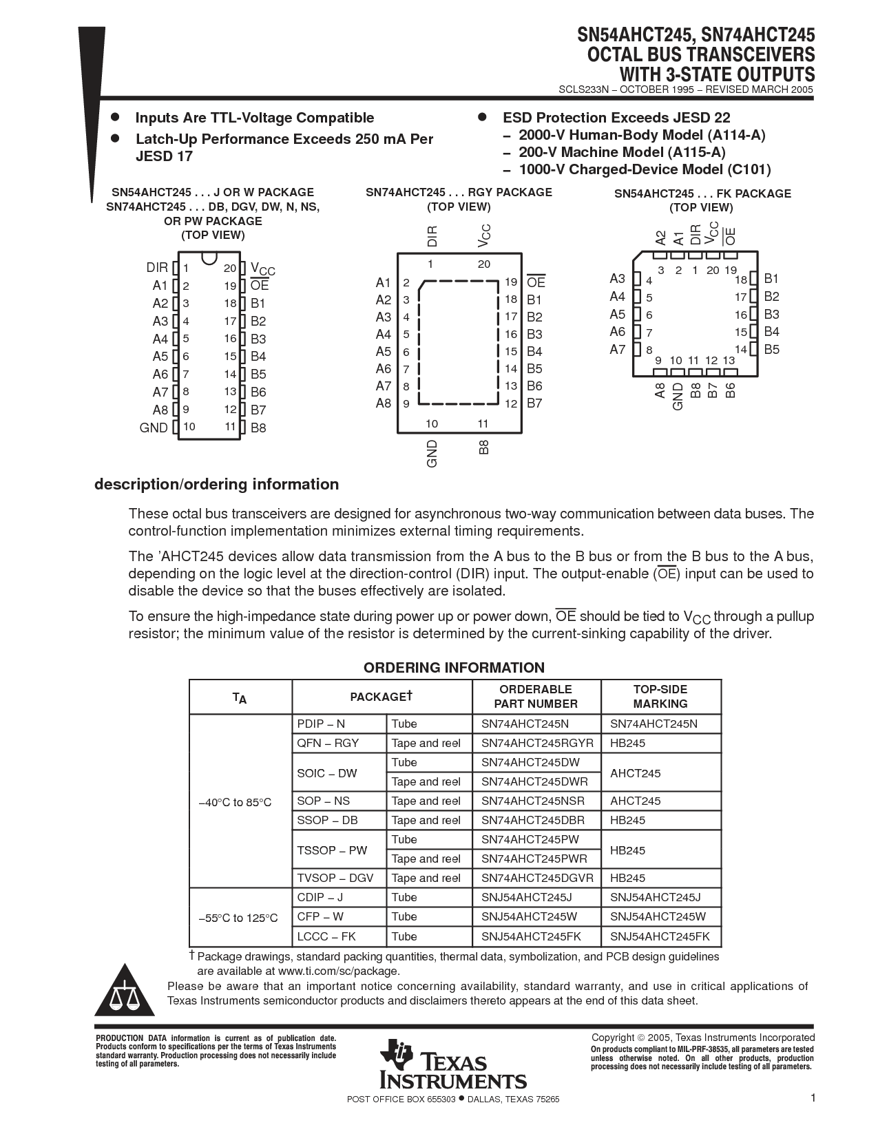 SN74AHCT245 . . . db, dgv, dw, n, ns,