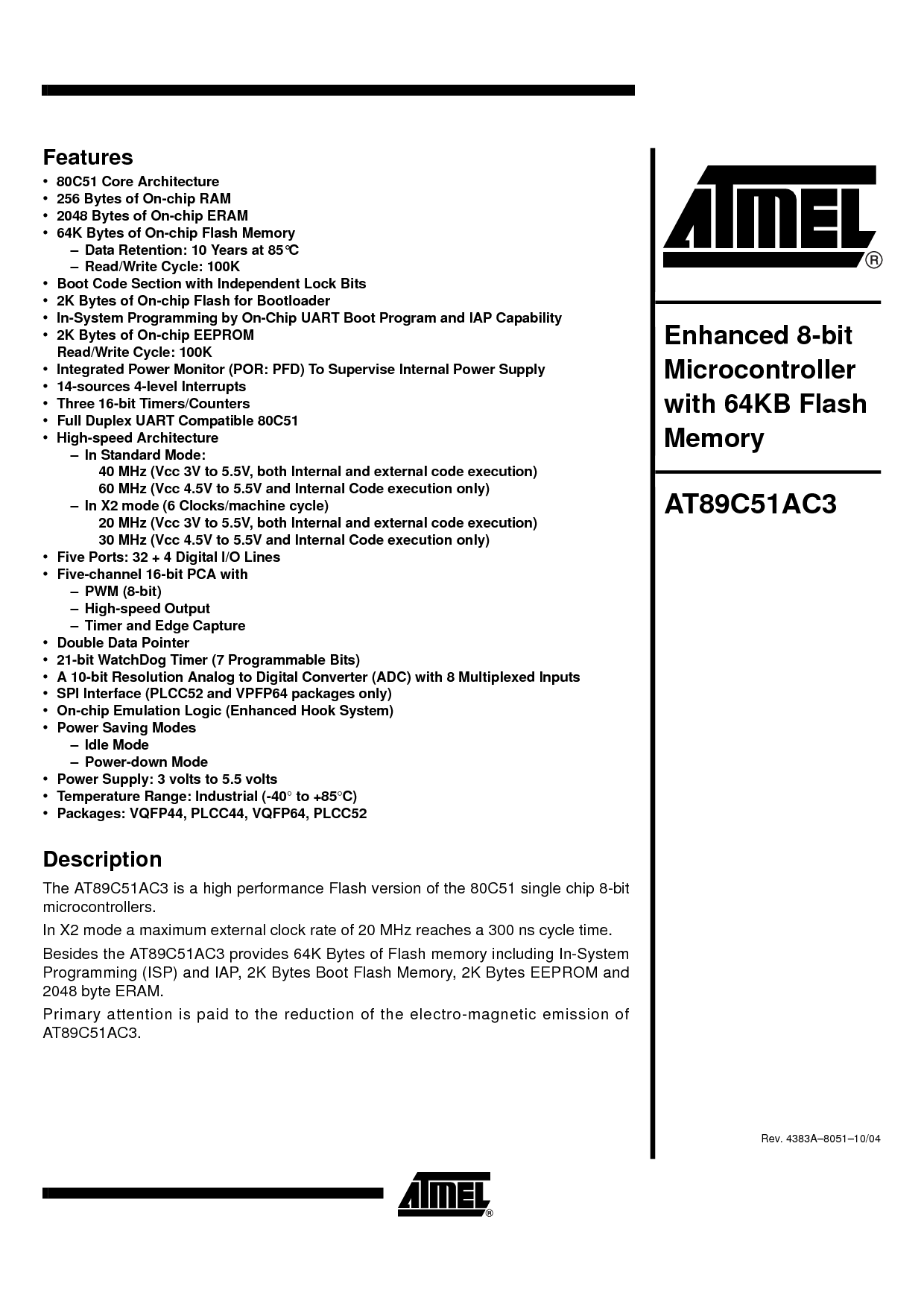 除了 这 at89c51ac3 提供 64k 字节数 的 闪光灯 记忆 包括 在系统内