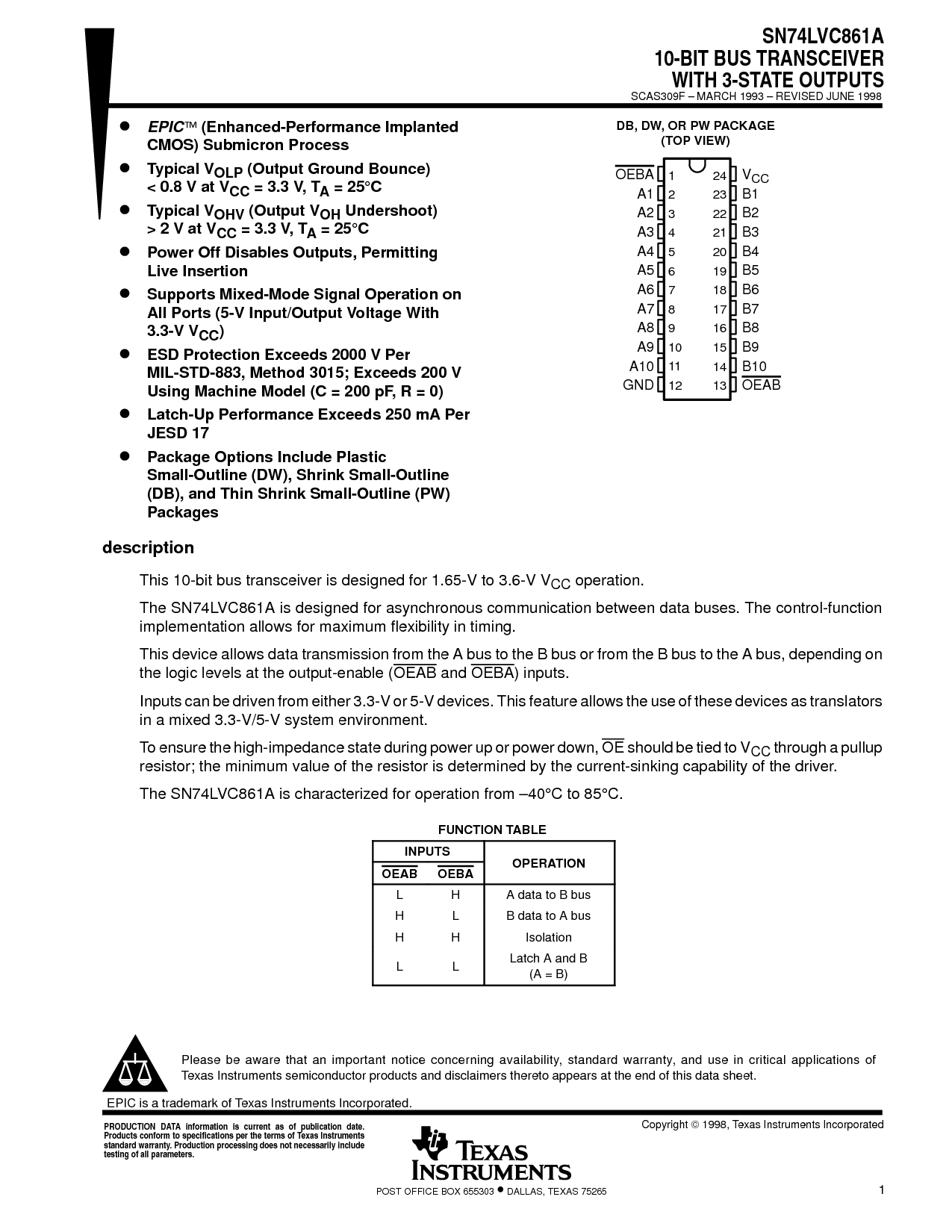 这 sn74lvc861a 是 设计 用于 异步 通信 之间 数据 公共汽车. 这 控制-功能