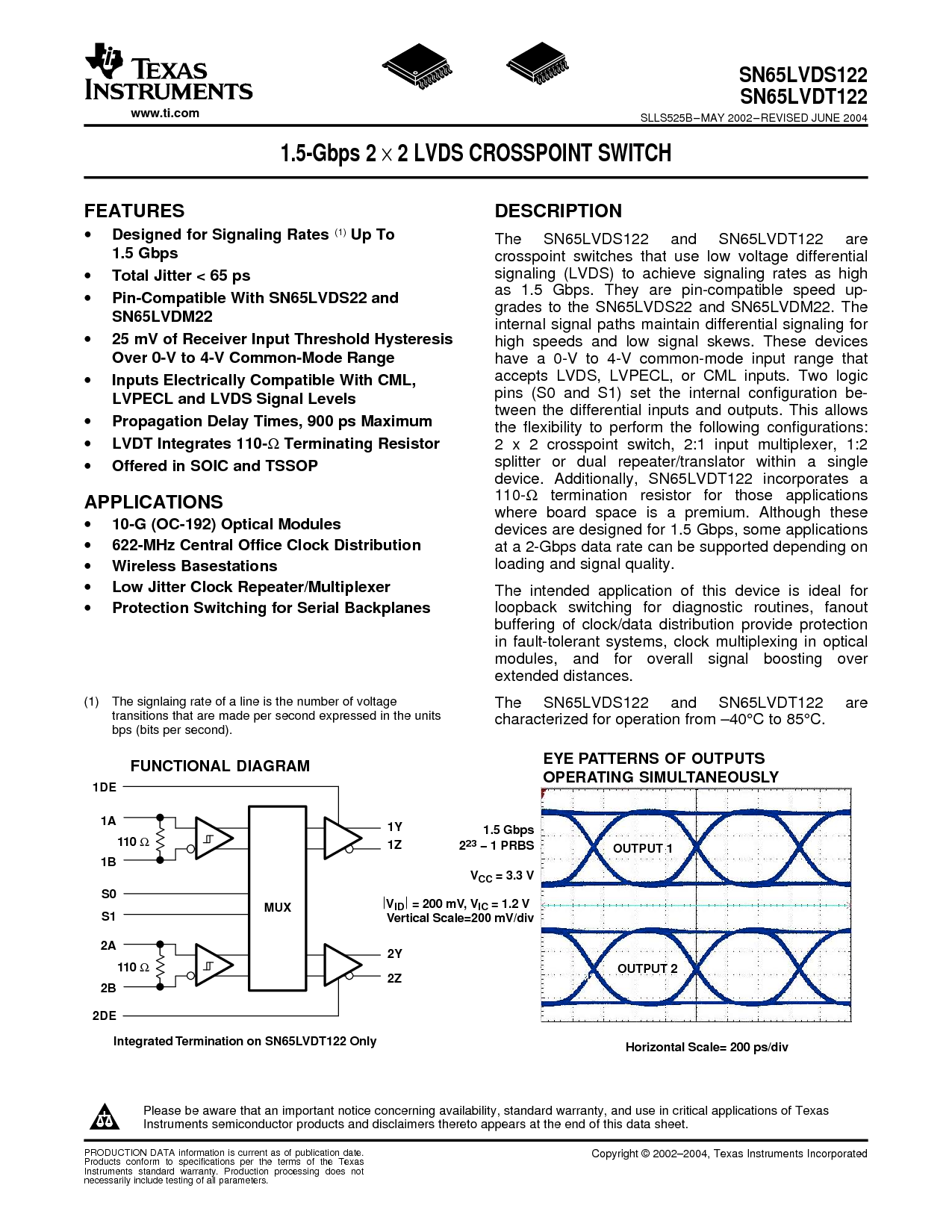 1.5-Gbps 2 x 2 LVDS CROSSPOINT SWITCH