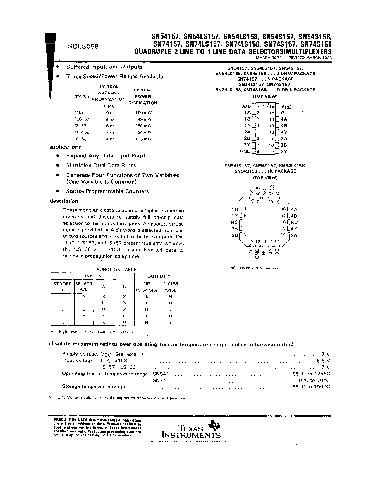QUADRUPLE 2-LINE TO 1-LINE DATA SELECTORS/MULTIPLEXERS