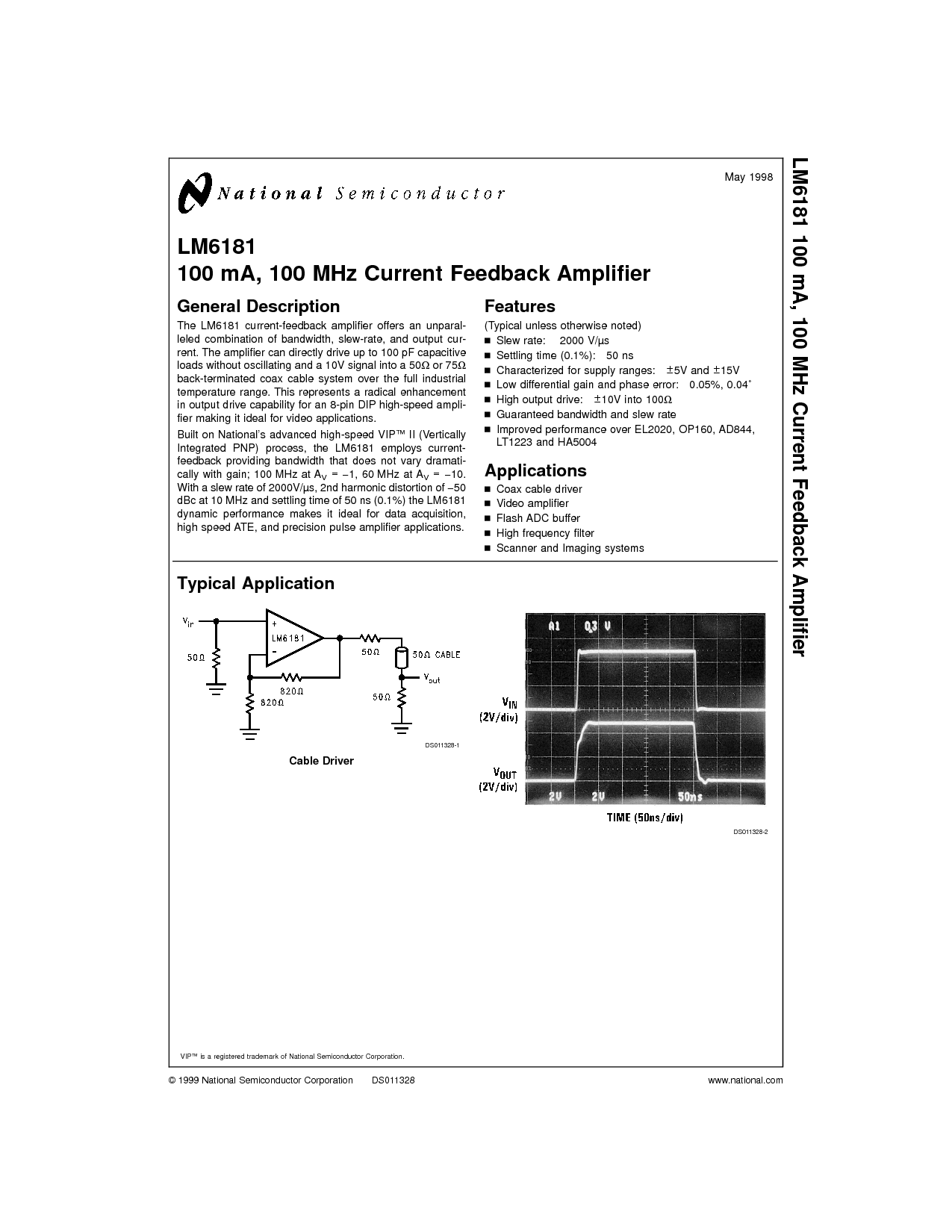 LM6181 100 ma, 100 MHz 电流 反馈 放大器