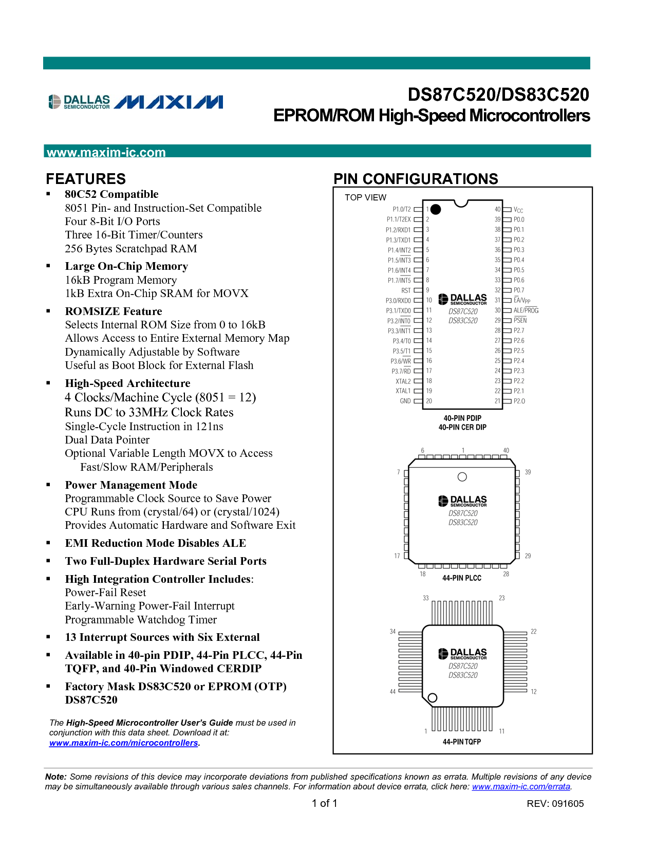 浏览型号DS87C520-QCL的Datasheet PDF文件第5页