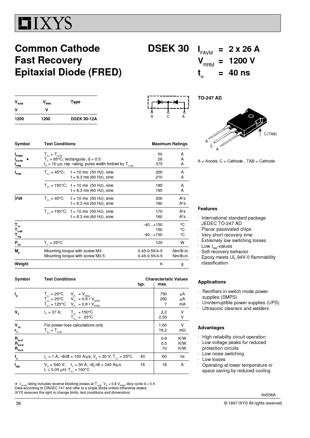 ixys 储备金 这 右侧 至 变更 限制, 测试一下 条件 和 尺寸
