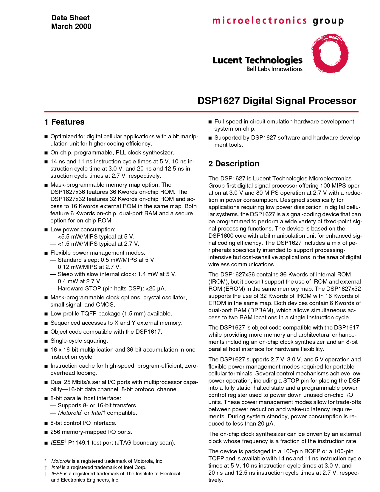 这 dsp1627 是 lucent 技术 微电子学