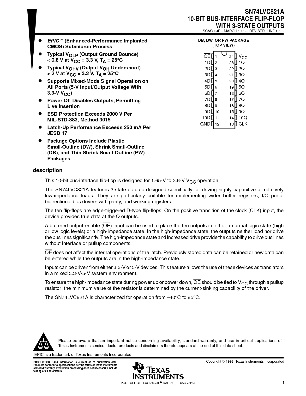 这 sn74lvc821a 特点 3-州 产出 设计 具体而言 用于 驾驶 高度 电容式 或 相对而言