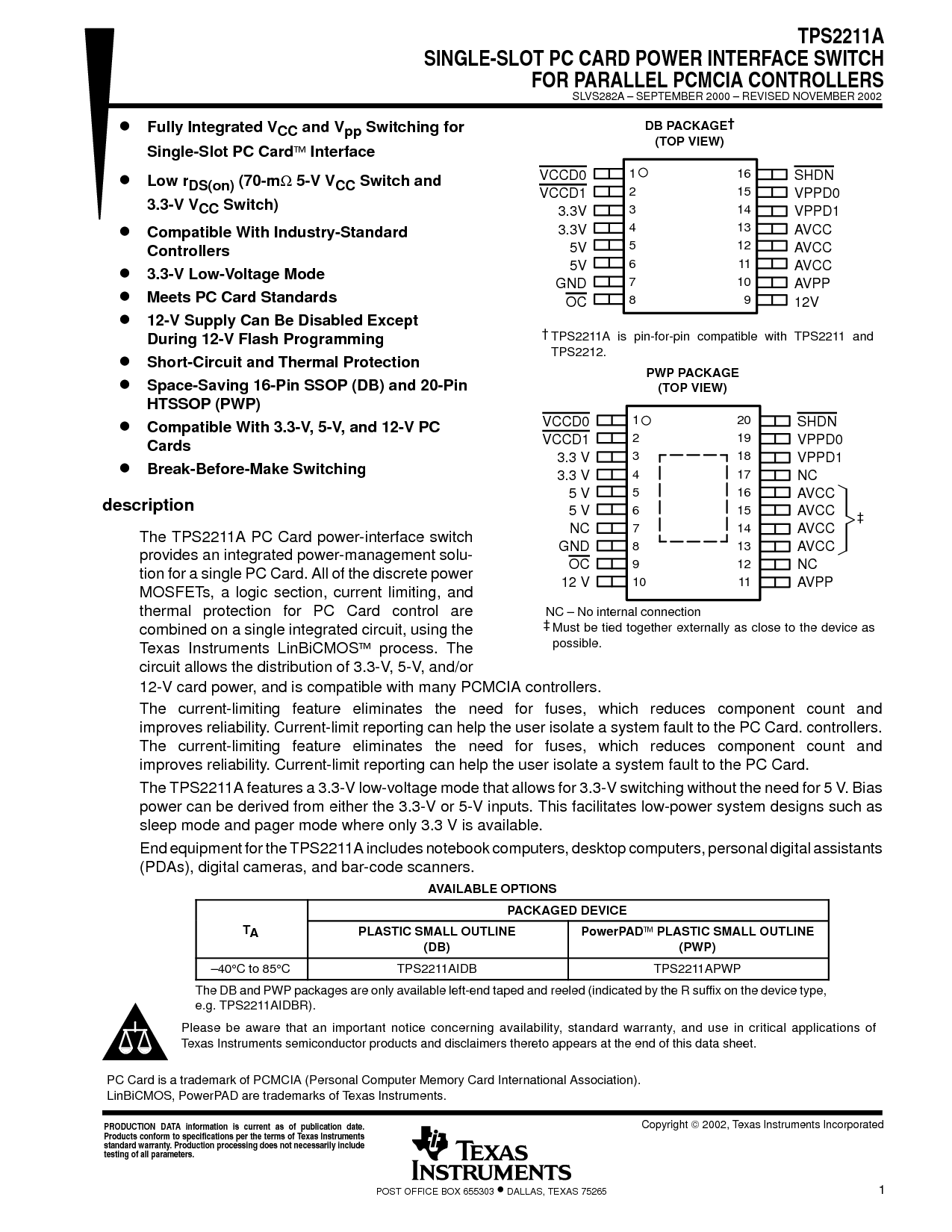 c TPS2211AIDB TPS2211APWP