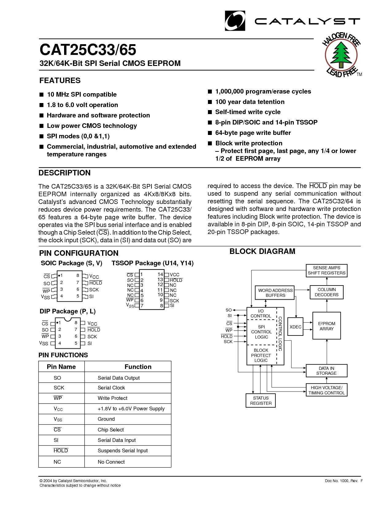 这 cat25c33/65 是 一个 32k/64k-有点 spi 串行 cmos