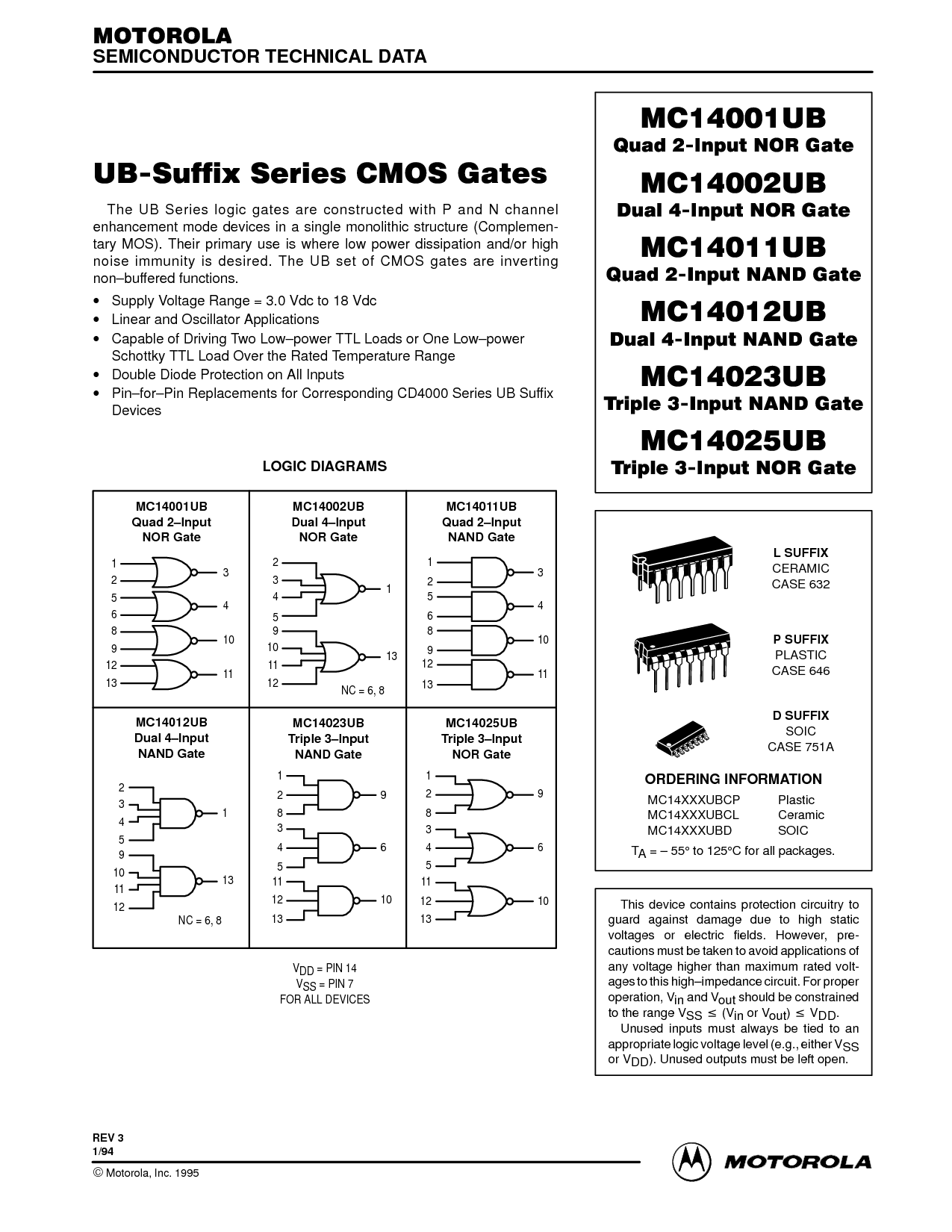 摩托罗拉 cmos 逻辑 datamc14001ub
