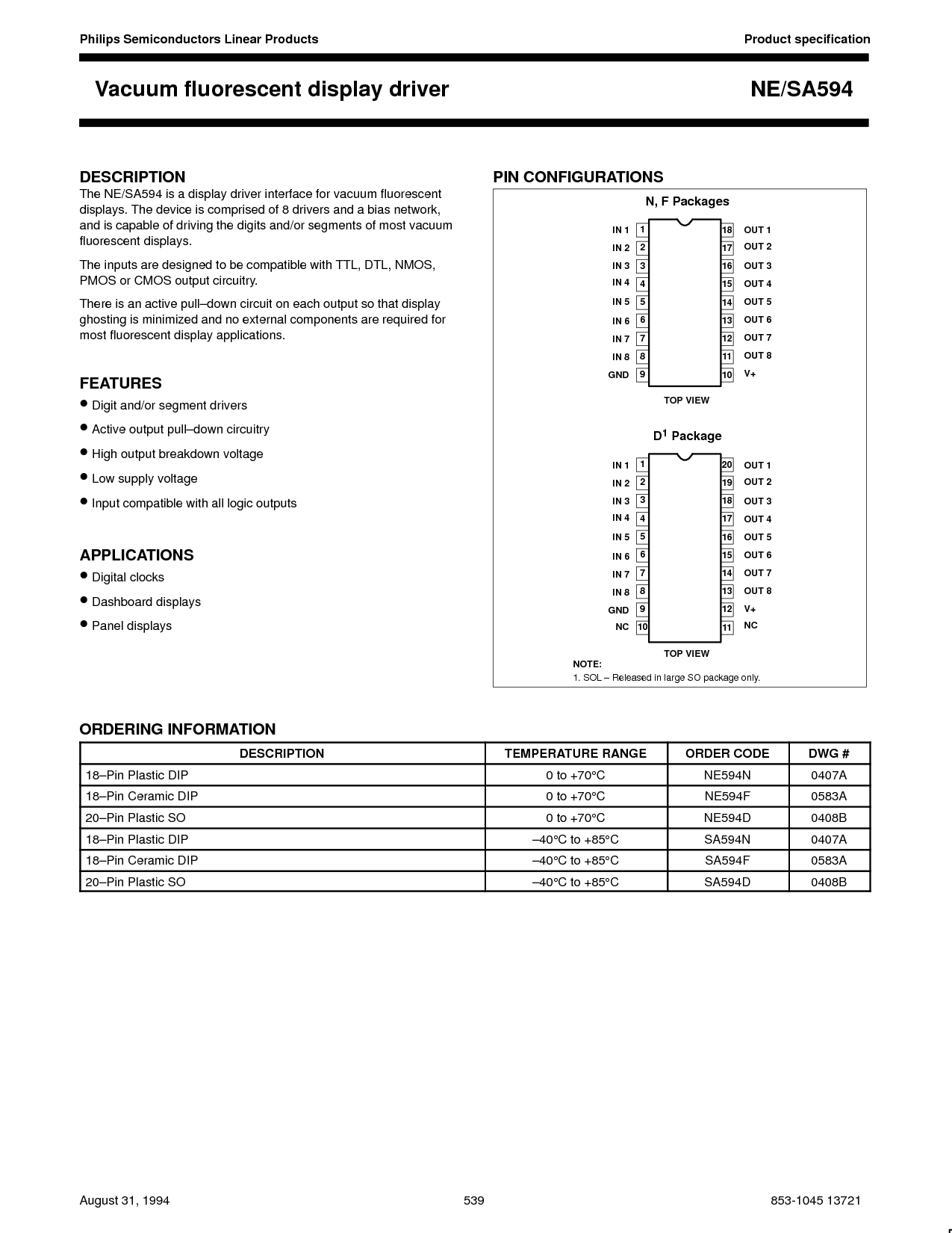 这 ne/sa594 是 一个 显示 驾驶员 接口 用于 真空 荧光