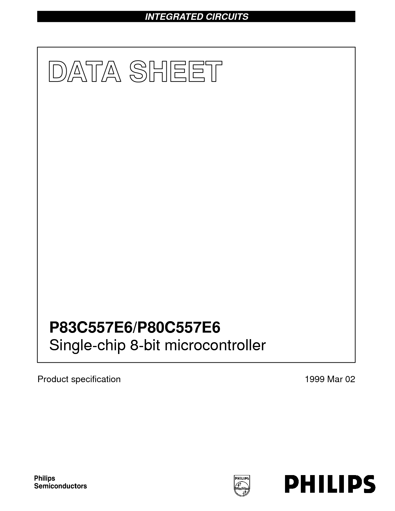 p83c557e6/p80c557e6 单芯片 8-有点 微控制器 产品 规格 1999 3月 02 综合 电路 | |