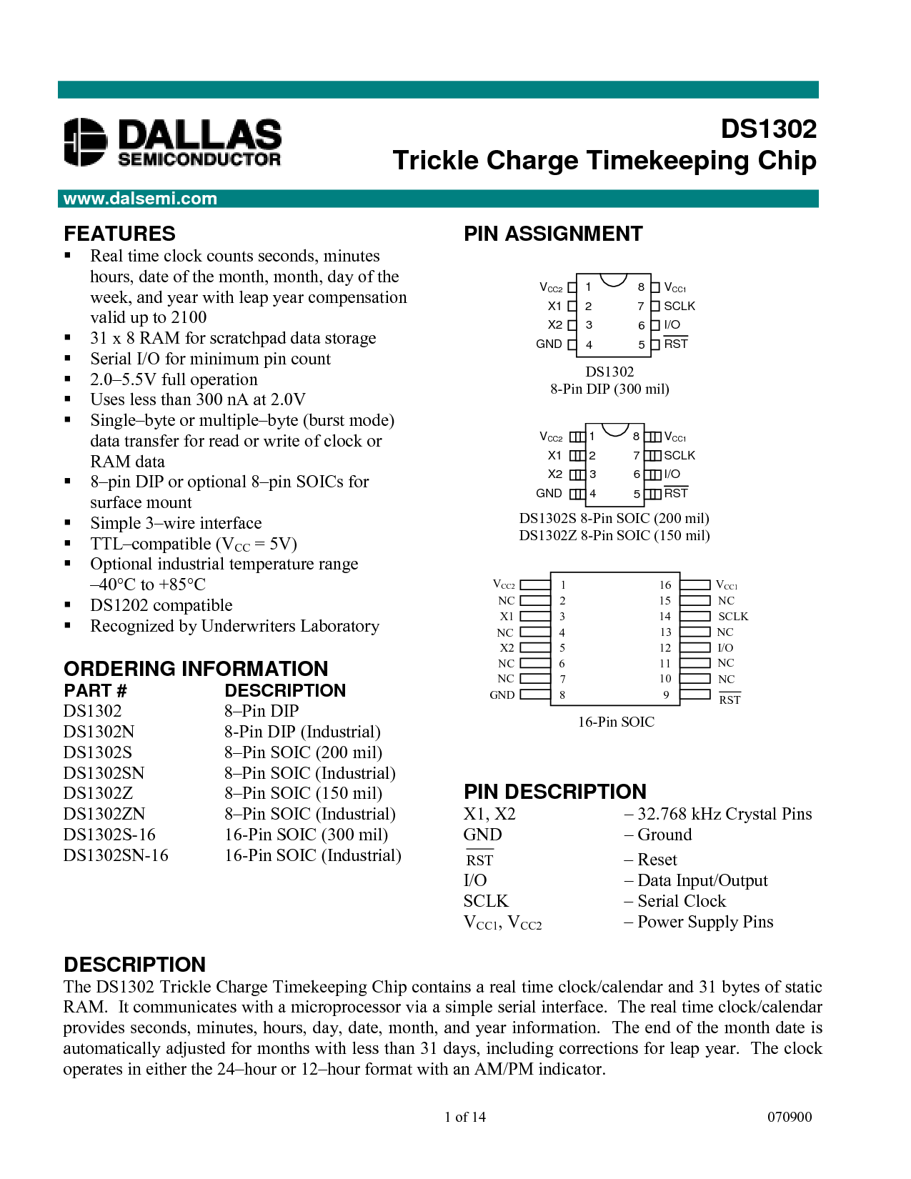 浏览型号DS1302ZN的Datasheet PDF文件第2页