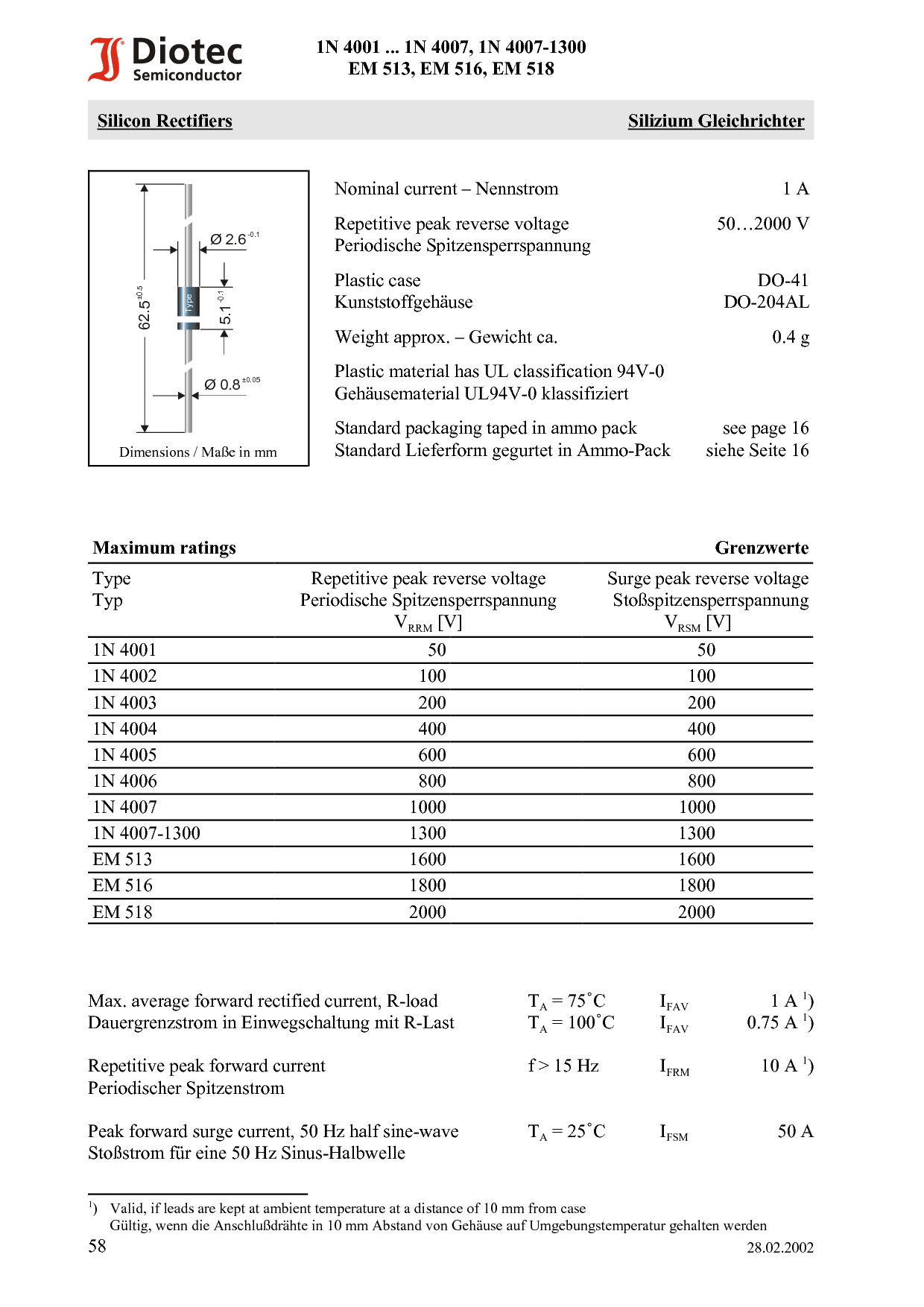 1n 4001 ... 1n 4007, 1n 4007-1300