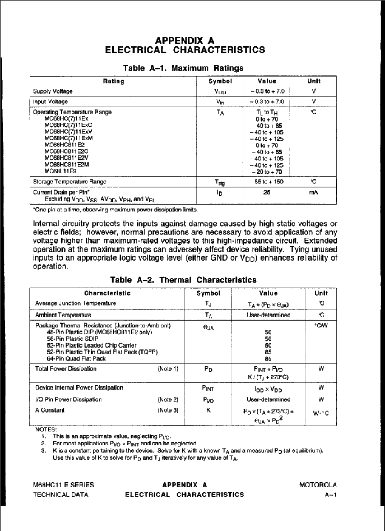 APPENDIX A ELECTRICAL CHARACTERISTICS
