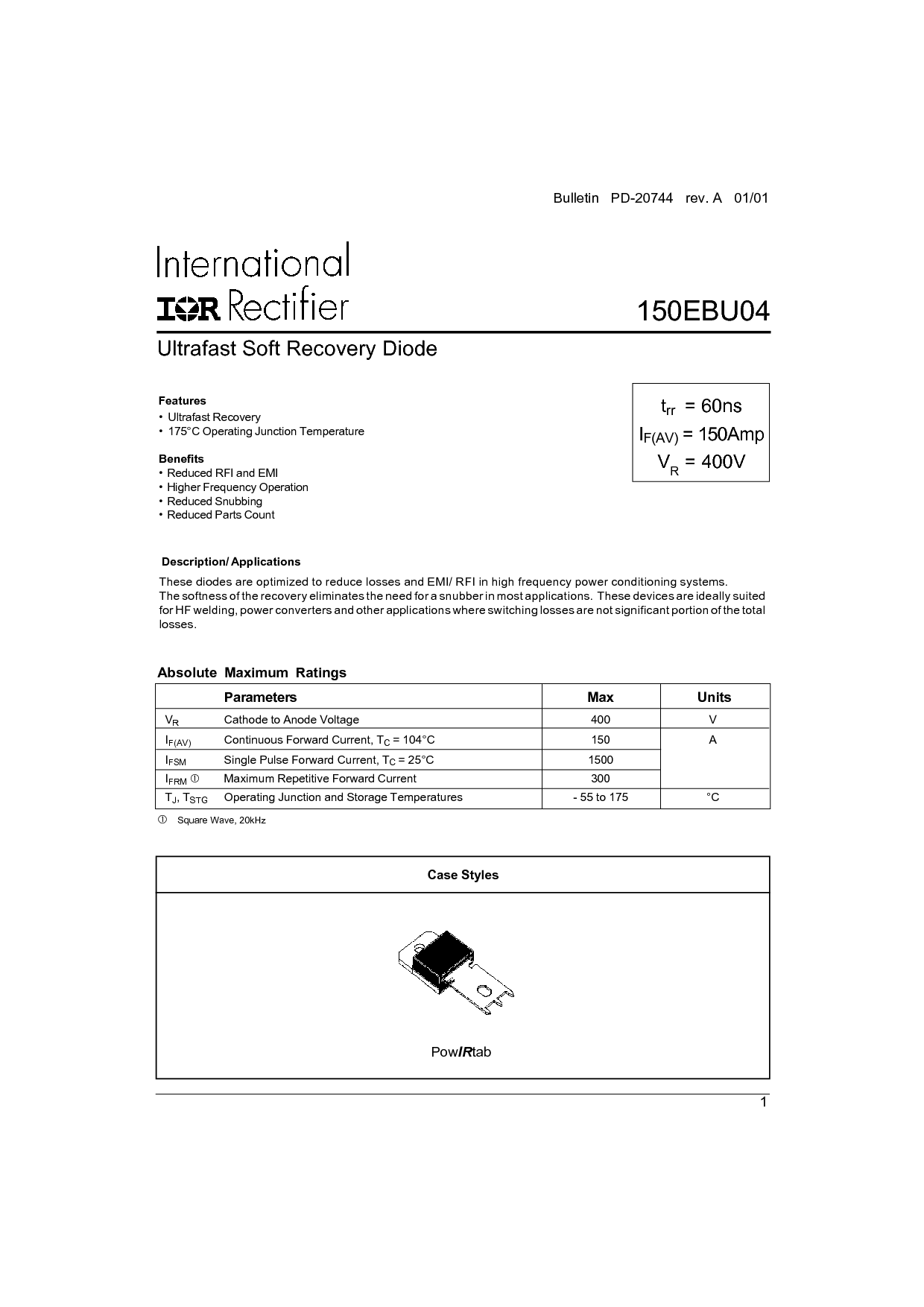 这些 二极管 是 优化 至 减少 损失 和 emi/ rfi 入点 高 频率 电源 调节 系统.