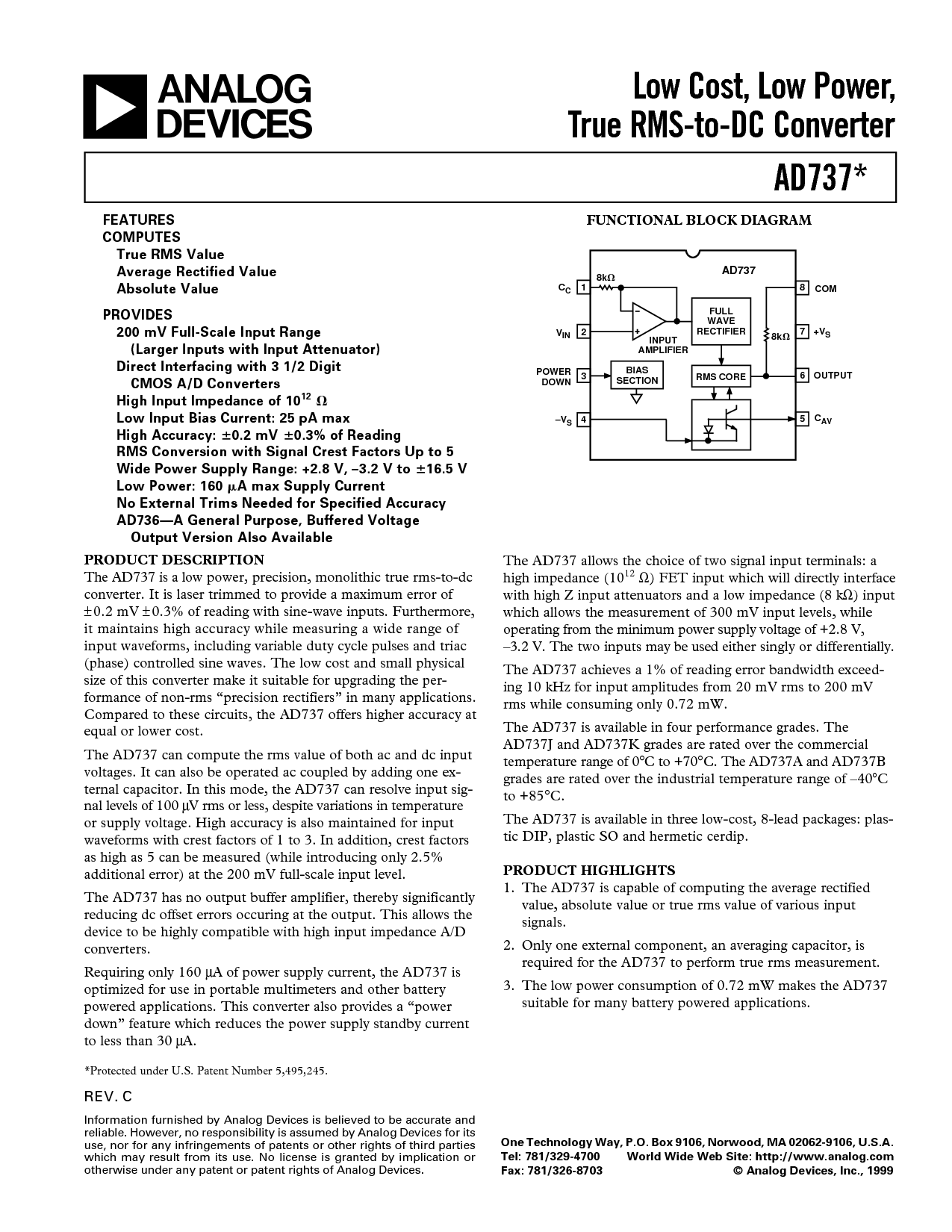 这 ad737 是 可用 入点 三个 低-成本, 8-铅 软件包: plas-