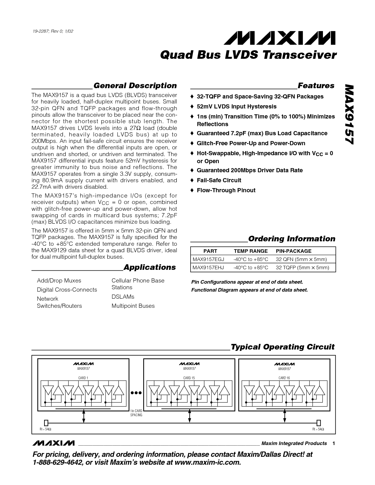 这 max9157 是 一个 四边形 总线 lvds (blvds) 收发器