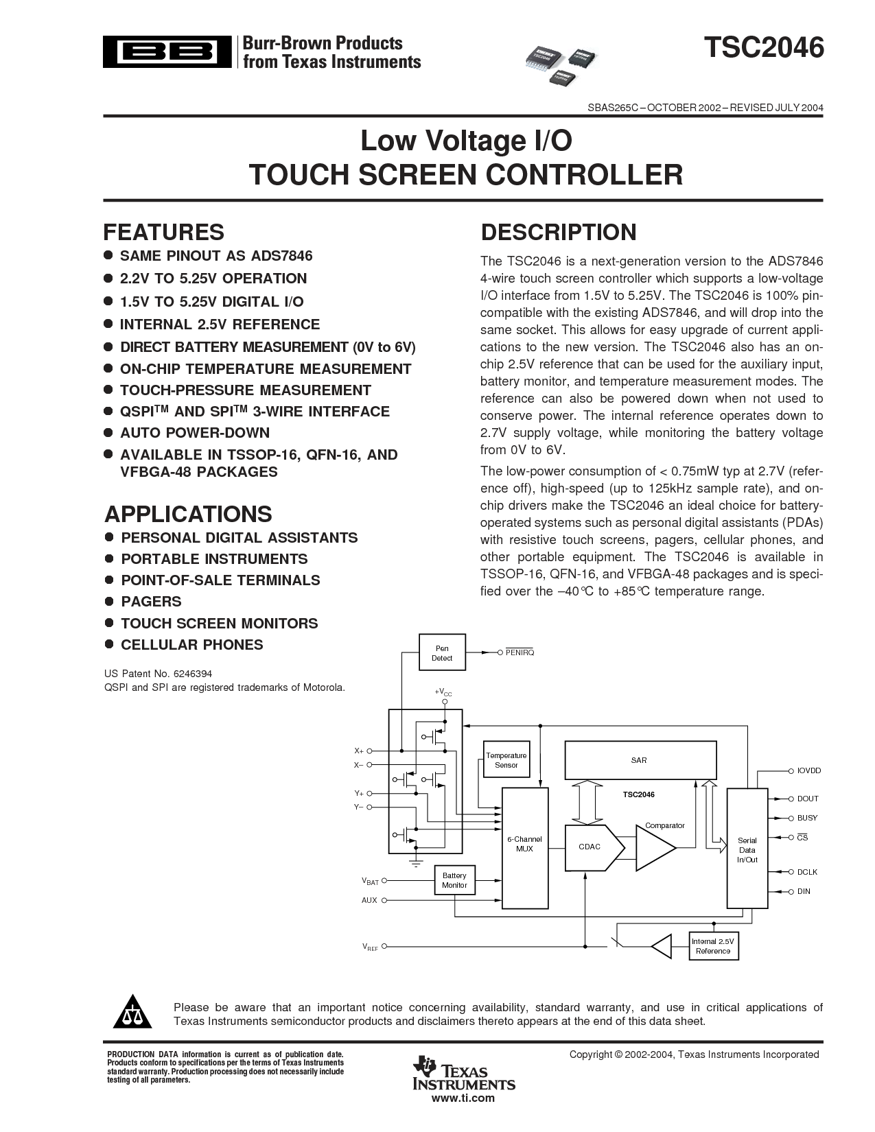 sbas265c – october 2002 – 修订 july 2004