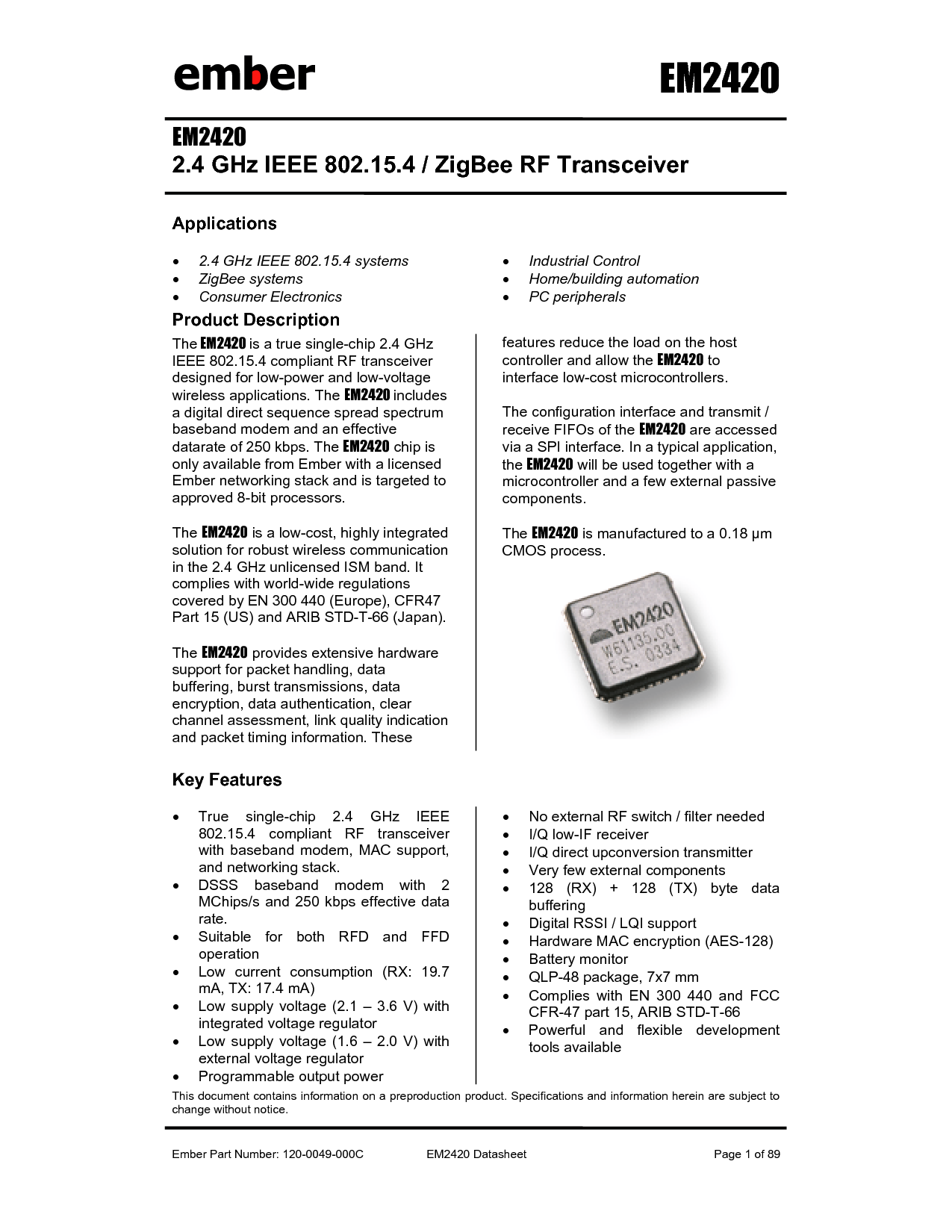 2.4 ghz ieee 802.15.4 / zigbee rf 收发器