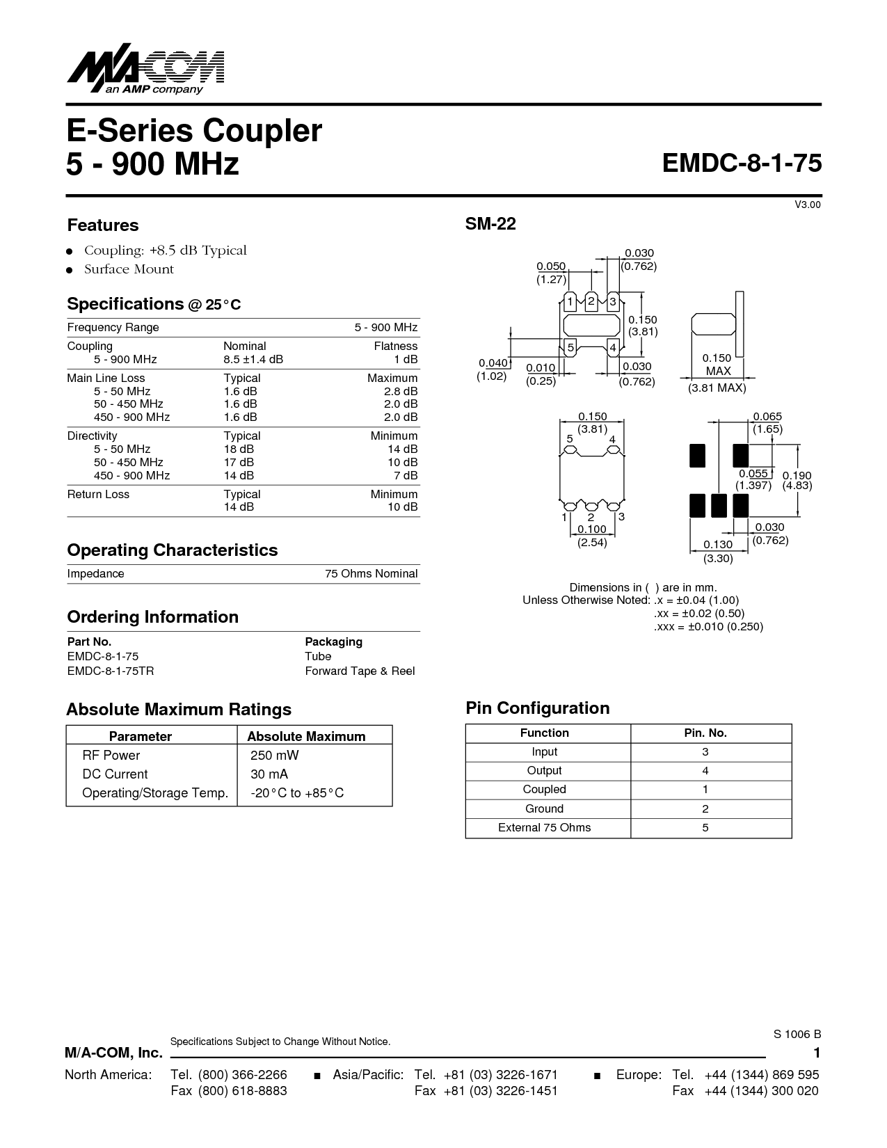 5 - 900 mhz 8.5 ±1.4 db 1 db