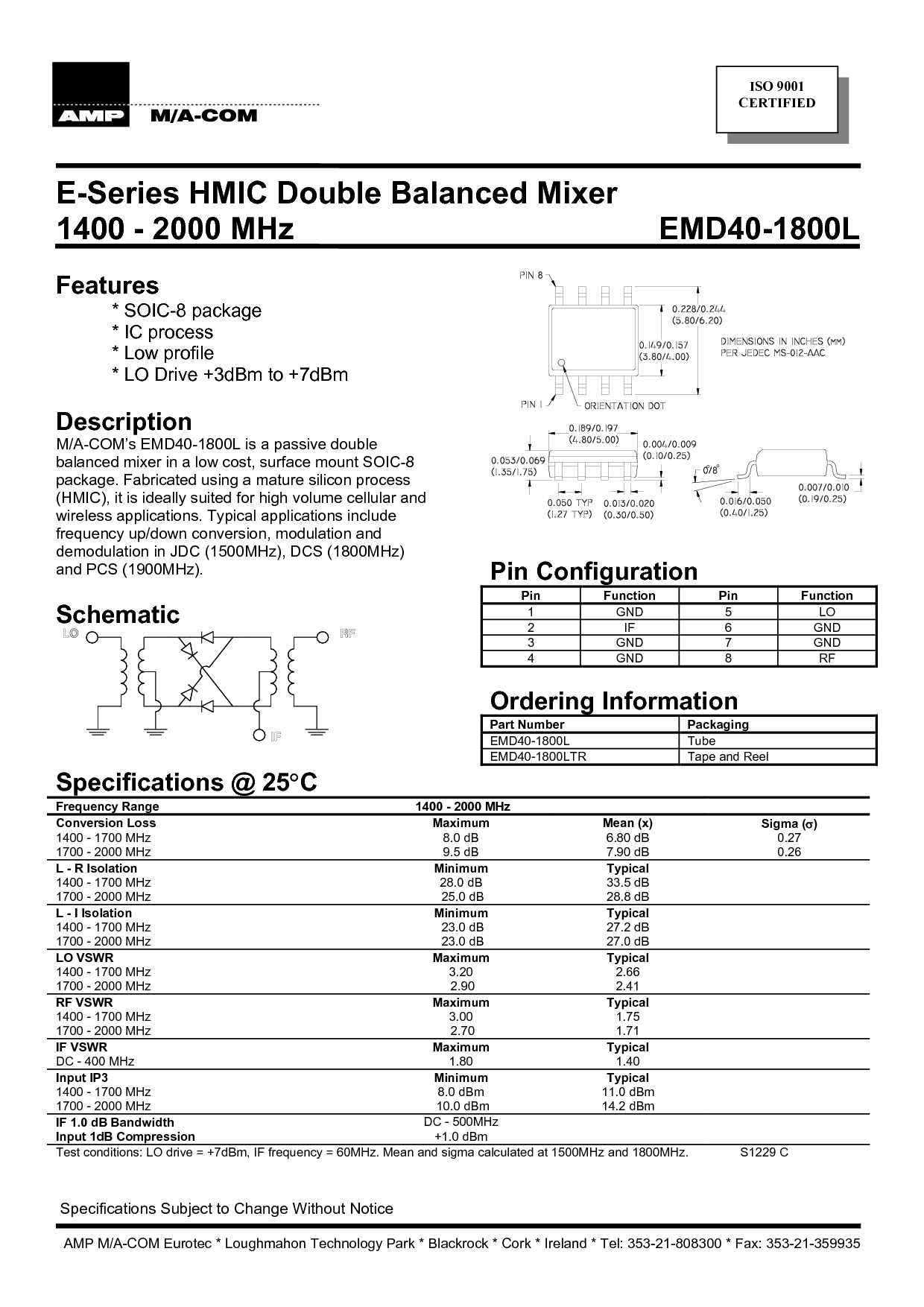 放大器 m/一个-com eurotec * loughmahon 技术 园区 * blackr锁定 * cork * ireland * tel: 353-21-808300 * 传真: 353-21-359935