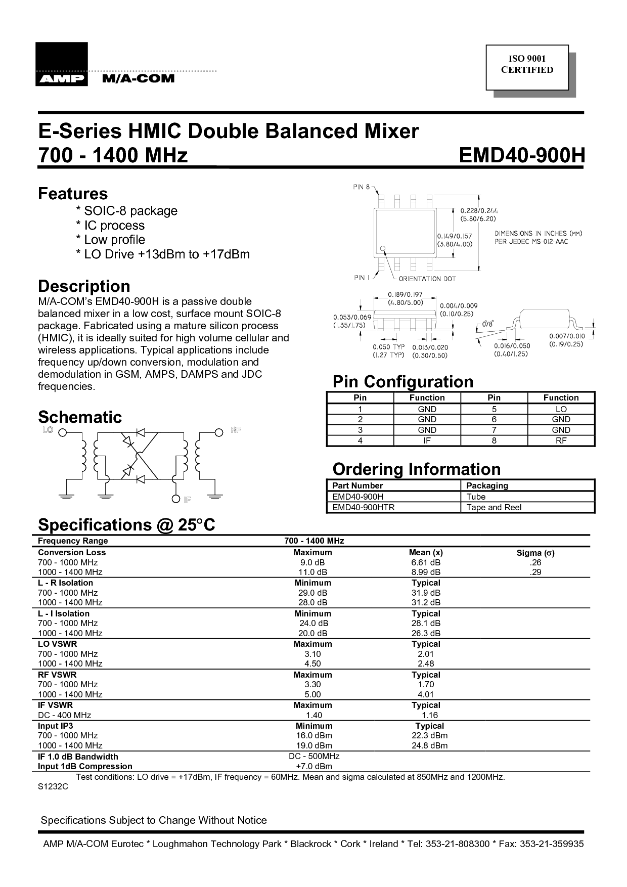 放大器 m/一个-com eurotec * loughmahon 技术 园区 * blackr锁定 * cork * ireland * tel: 353-21-808300 * 传真: 353-21-359935