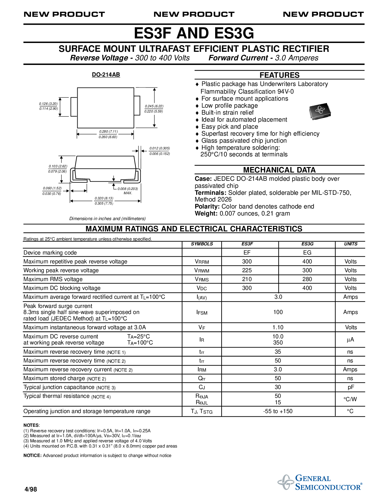 最大值 瞬时 前进 电压 在 3.0a v