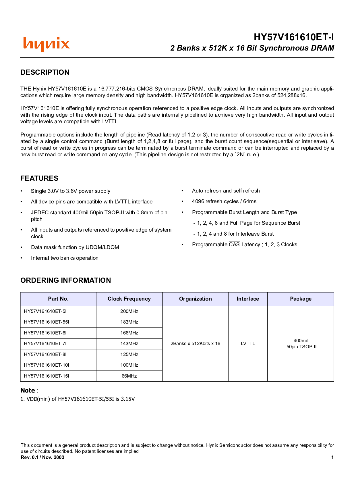 浏览型号HY57V161610ET-5I的Datasheet PDF文件第3页