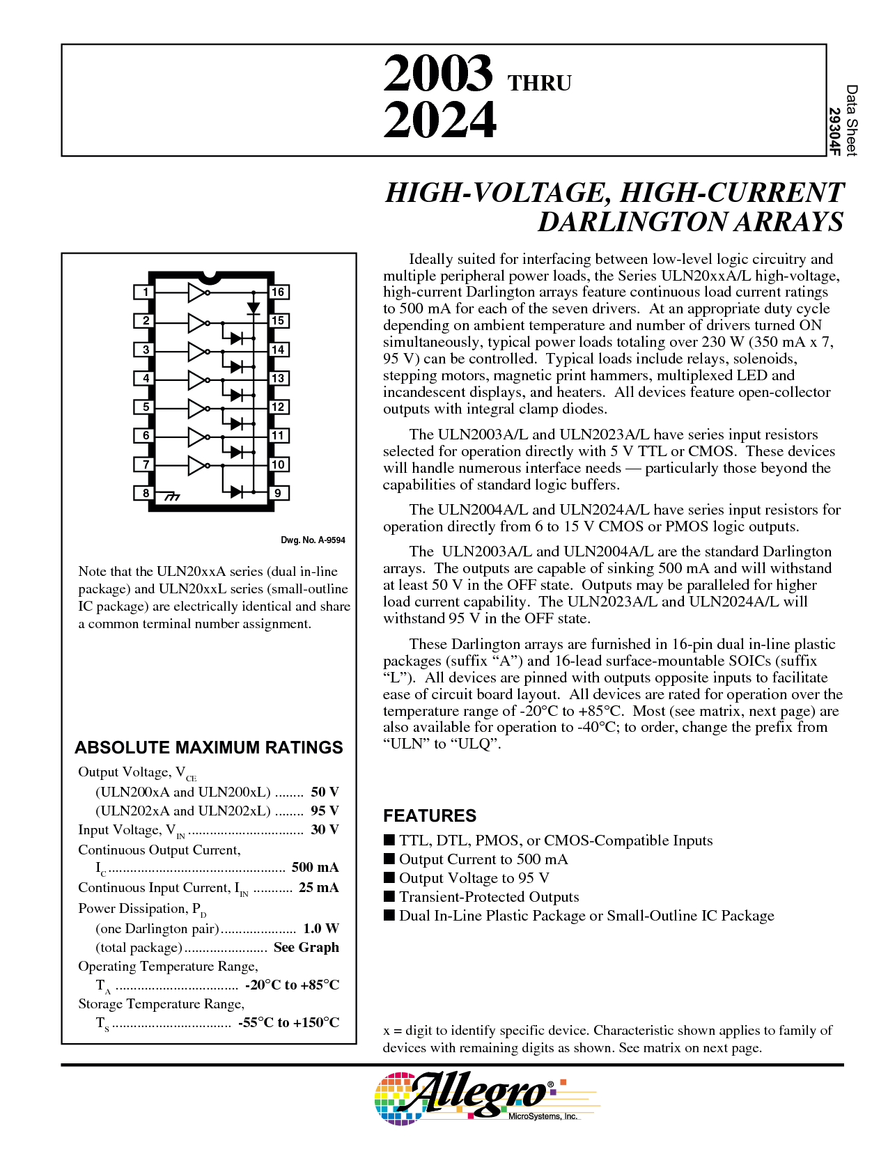 HIGH-VOLTAGE, HIGH-CURRENT DARLINGTON ARRAYS