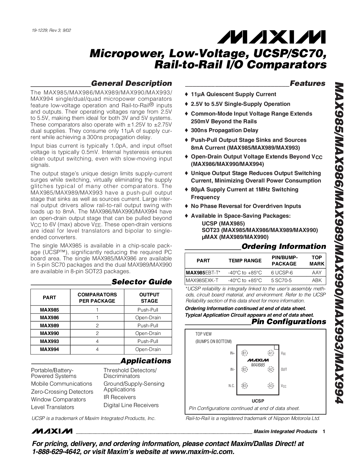 这 单独 max985 是 可用 入点 一个 芯片级 空调组件-