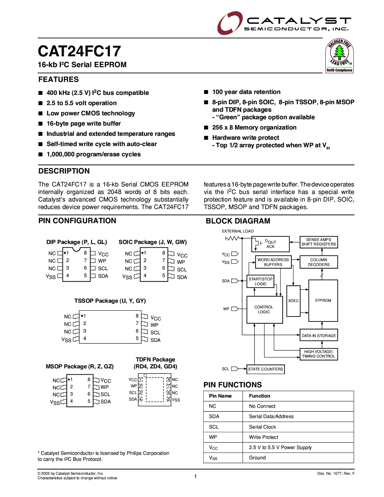 浏览型号CAT24FC17ZITE13REV-F的Datasheet PDF文件第2页