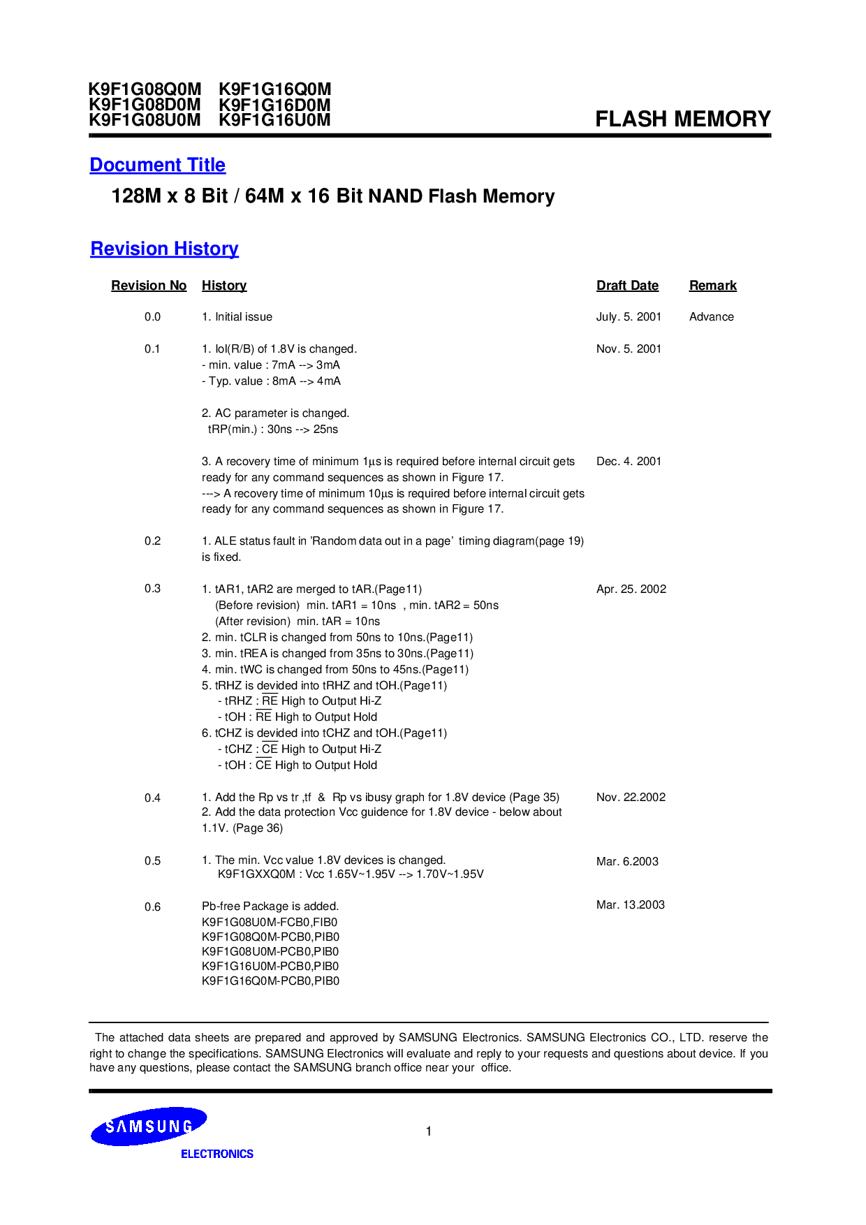 浏览型号K9F1G08Q0M的Datasheet PDF文件第6页