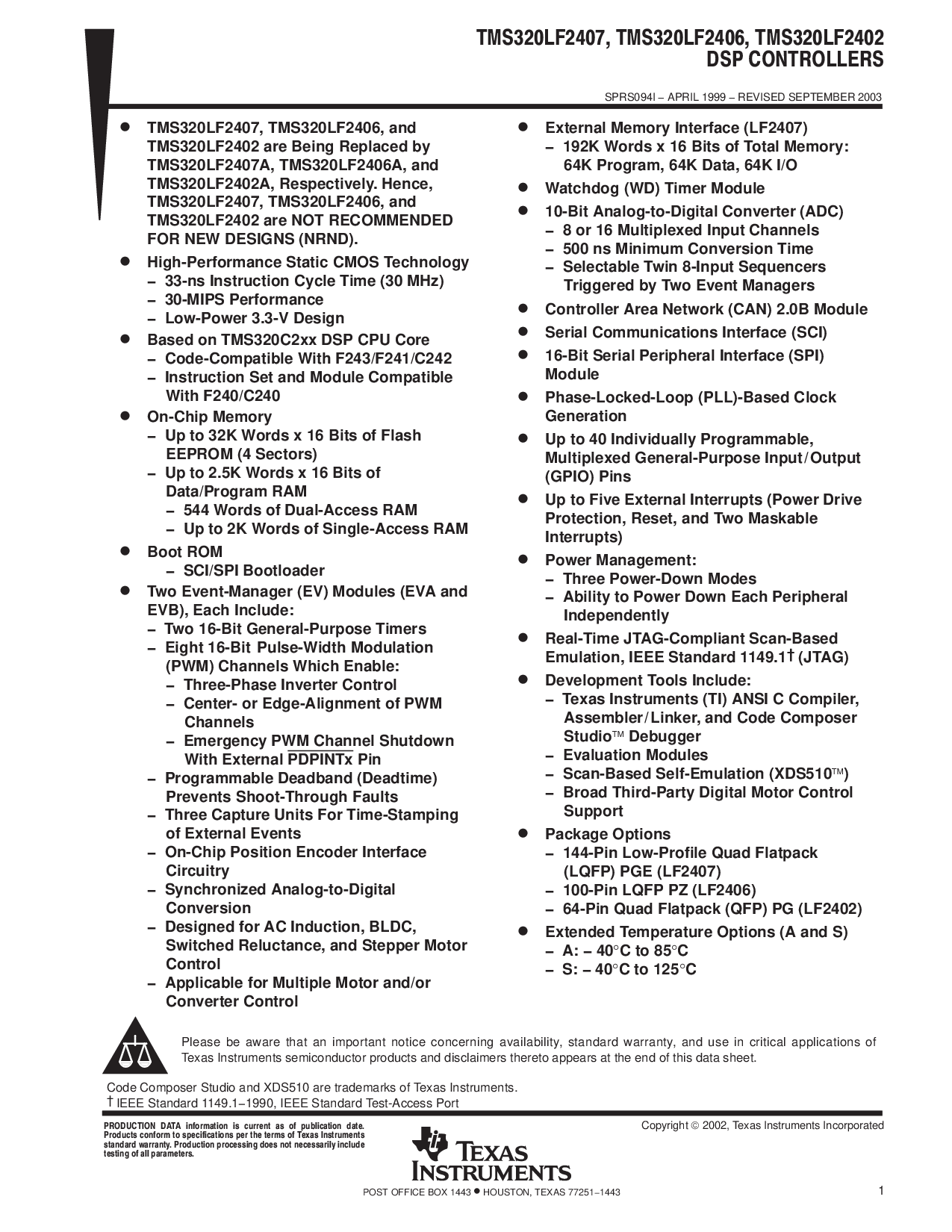 浏览型号TMS320LF2407PGA的Datasheet PDF文件第3页
