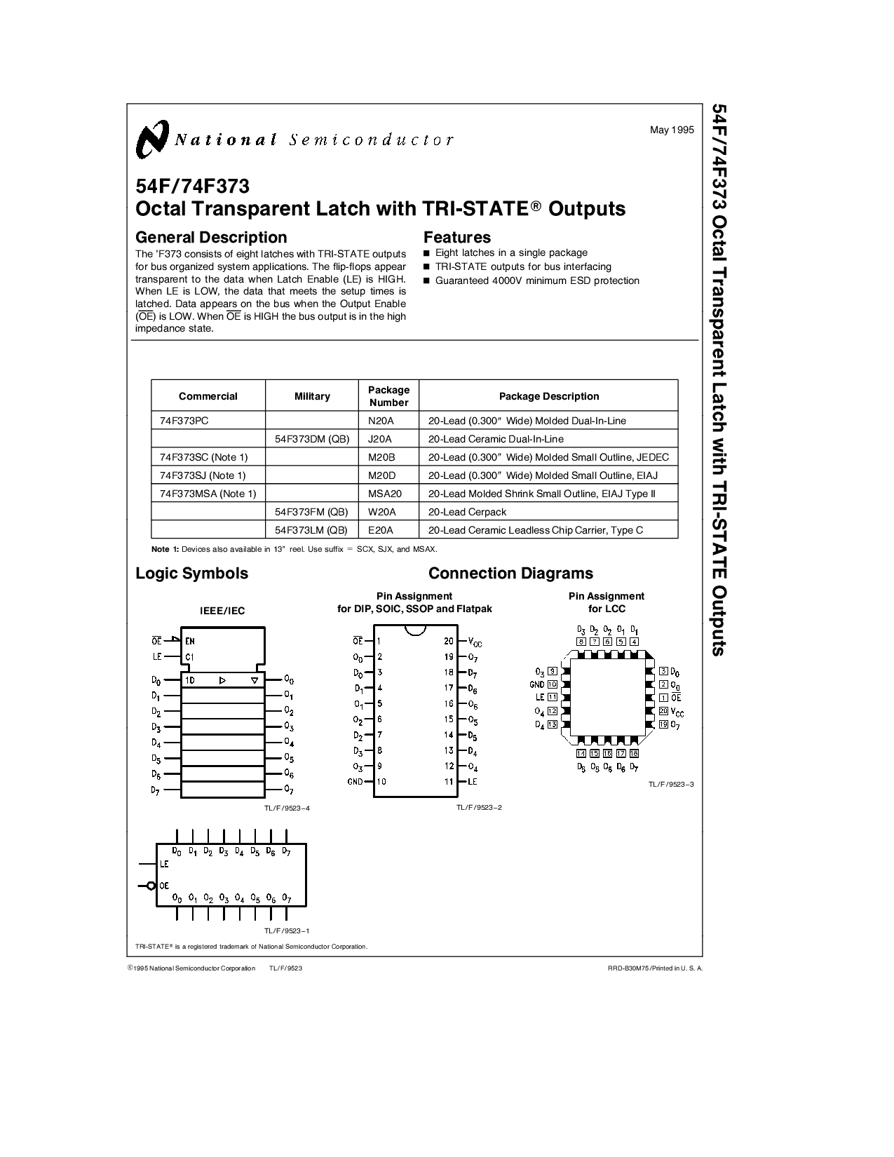 74F373MSA (备注 1) MSA20 20-铅 模制 收缩 Outline EIAJ 类型