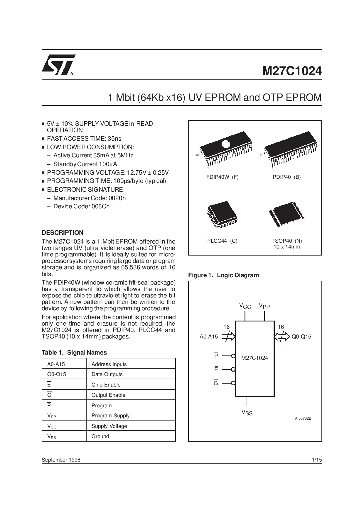 M27C1024 一个 1 Mbit 非易失存储器 提供 入点