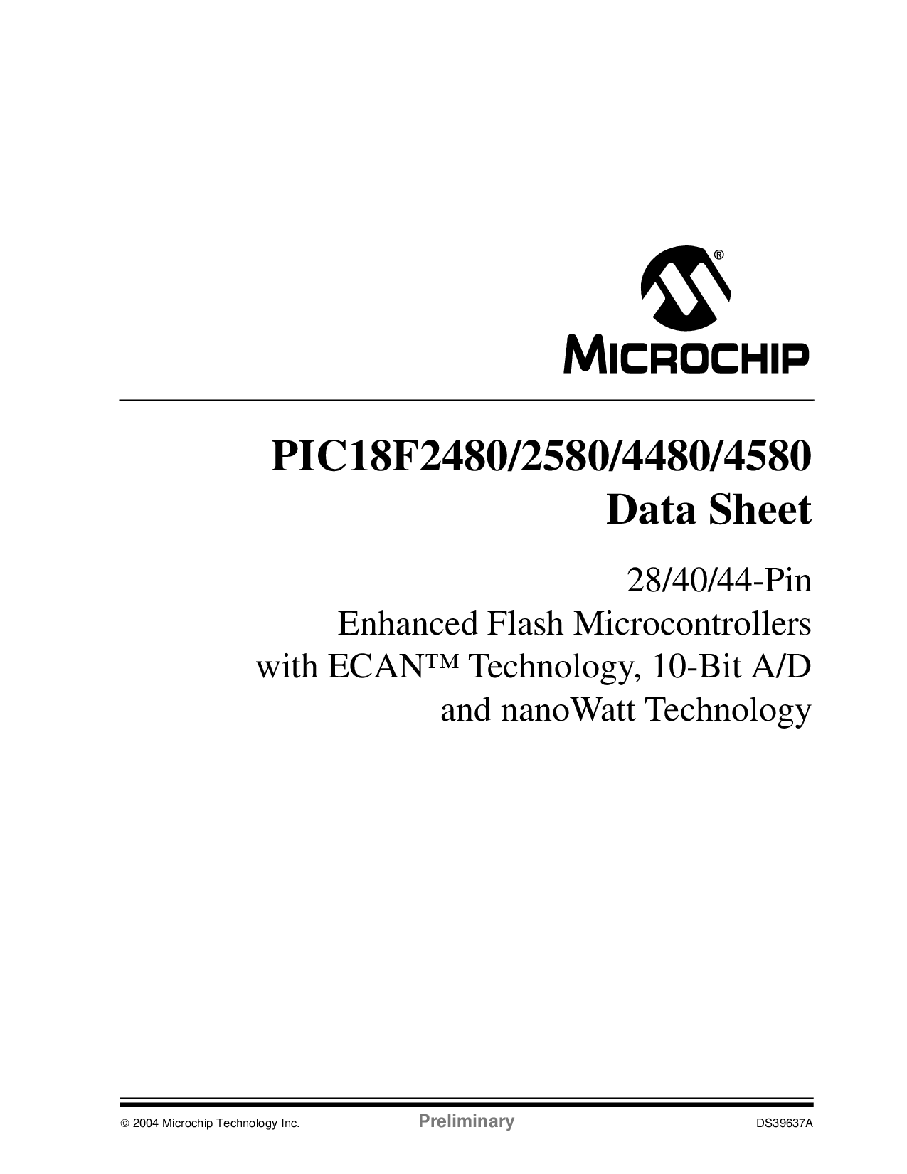 28/40/44-Pin Enhanced Flash Microcontrollers with ECAN Technology, 10-Bit A/D and nanoWatt Technology
