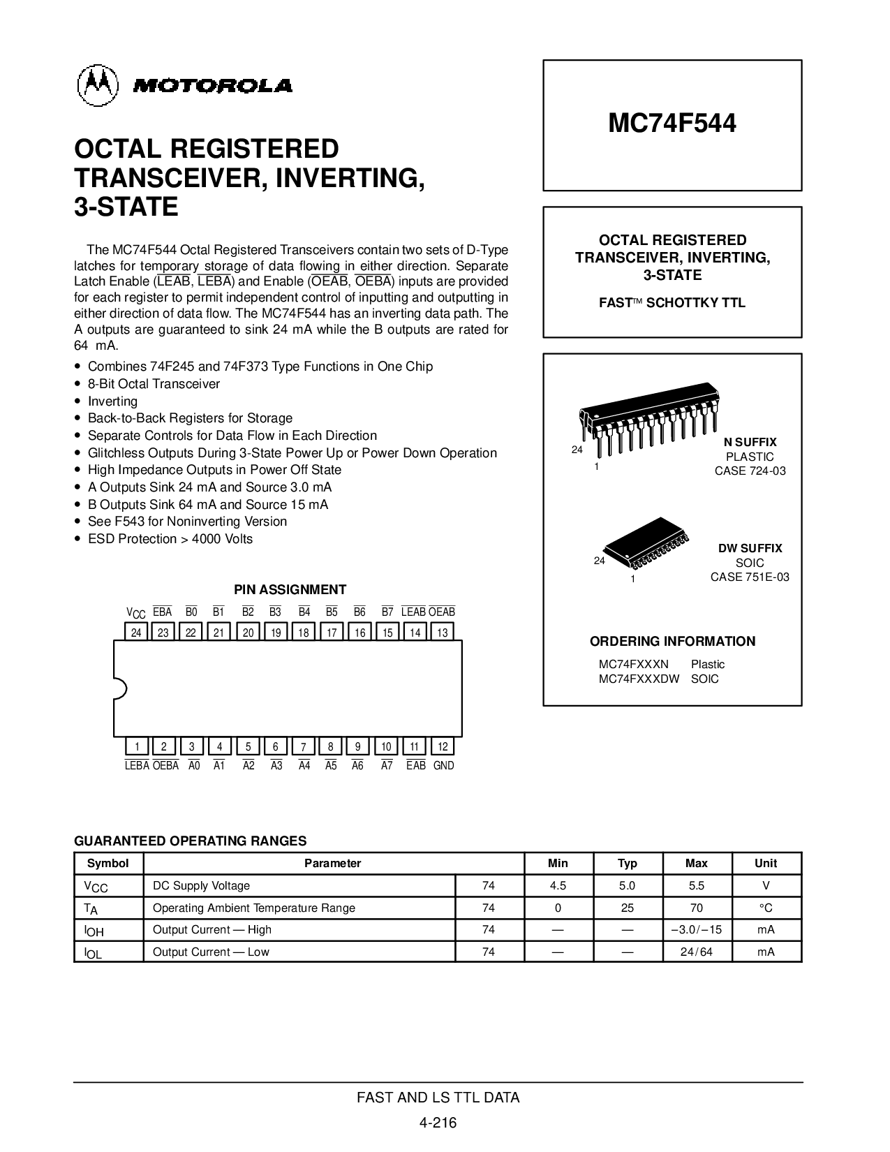 这mc74f544 八进制 已注册 transceivers 包含 两个 集 的 d-t类型