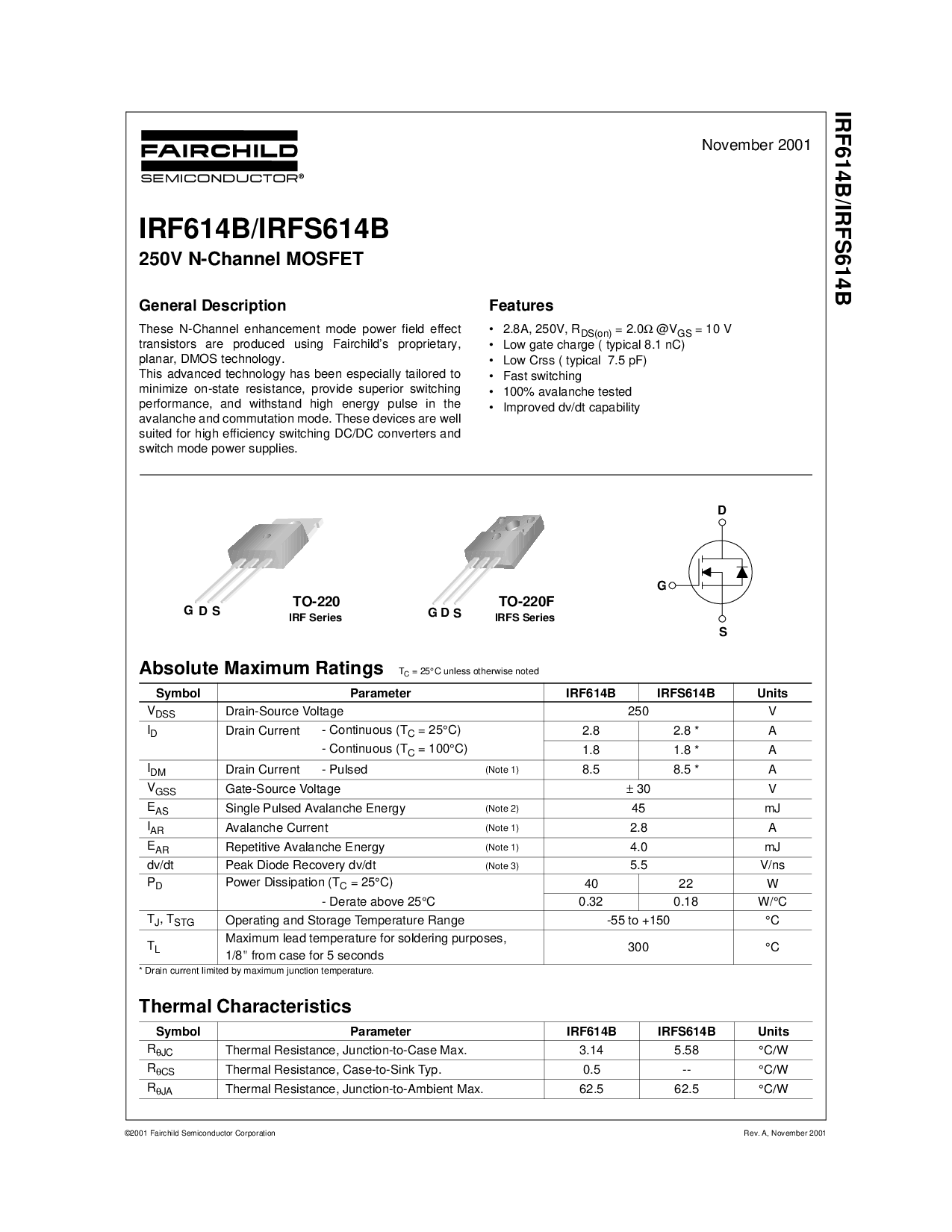 符号 参数 IRF614B IRFS614B 单位
